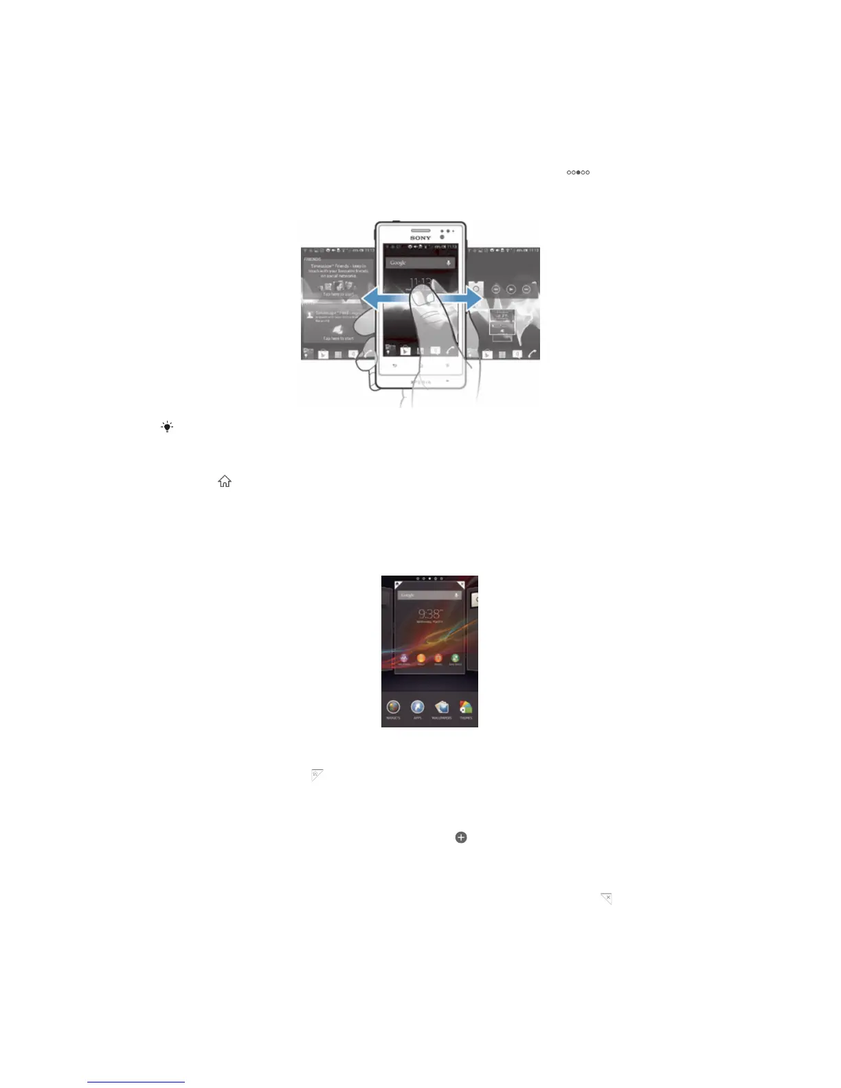 flick left or right to view content in all of the Home screen's panes. shows which