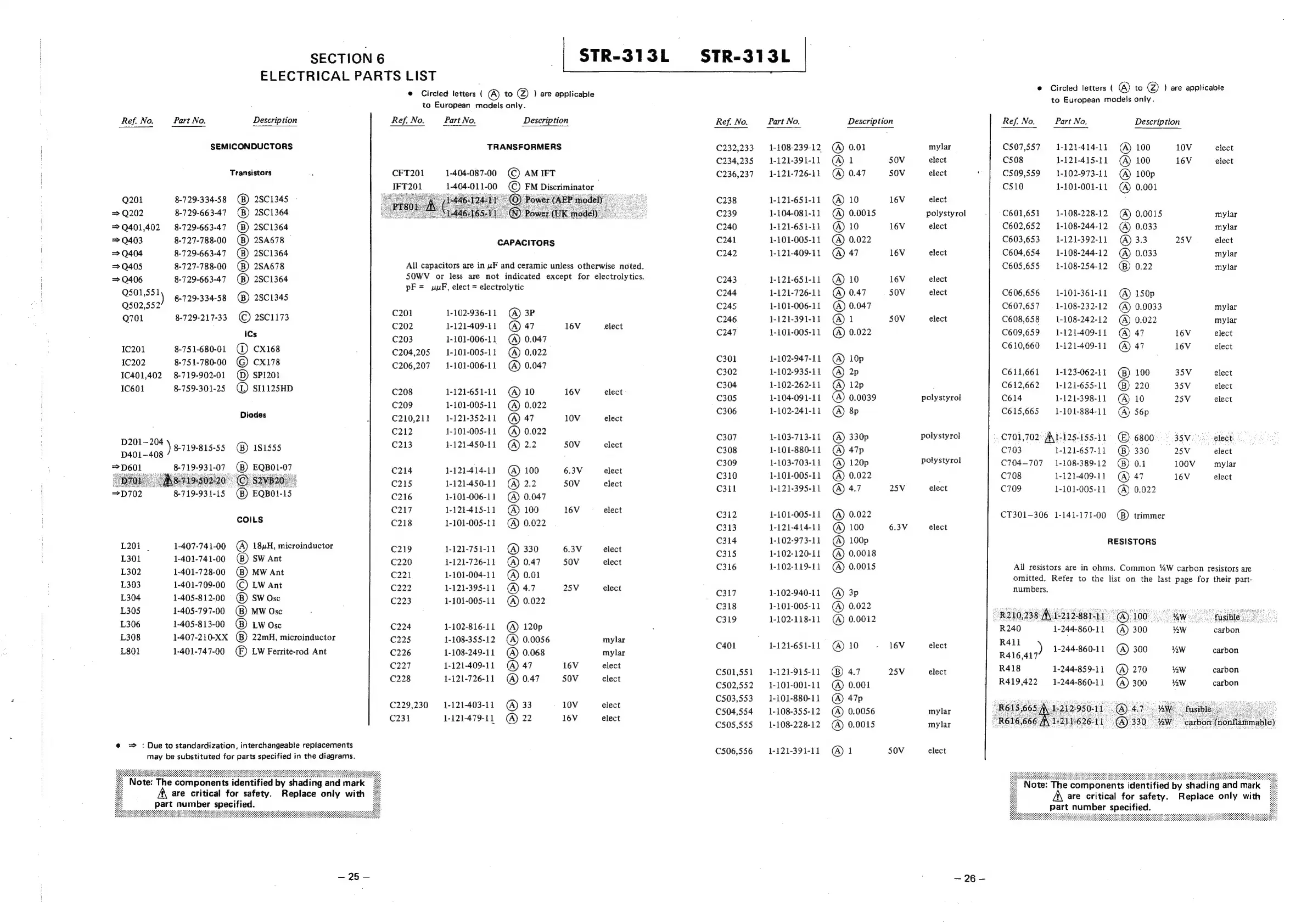 Sony STR-313L - SECTION 6 ELECTRICAL PARTS LIST; Electrical Parts List