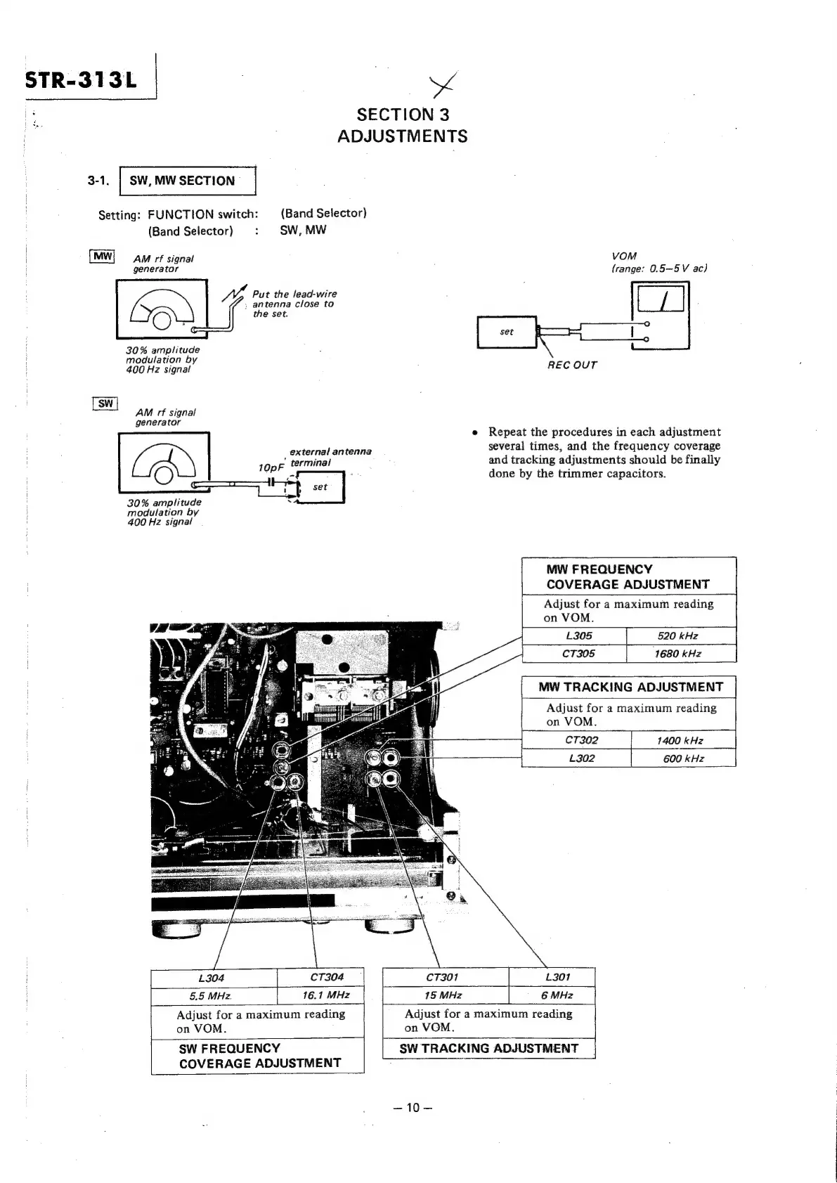 Sony STR-313L - SECTION 3 ADJUSTMENTS; SW, MW SECTION