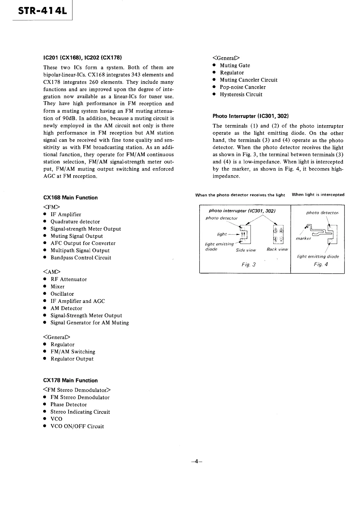 Sony STR-414L - Ic201; Photo Interrupter; CX168 Main Function; CX178 Main Function