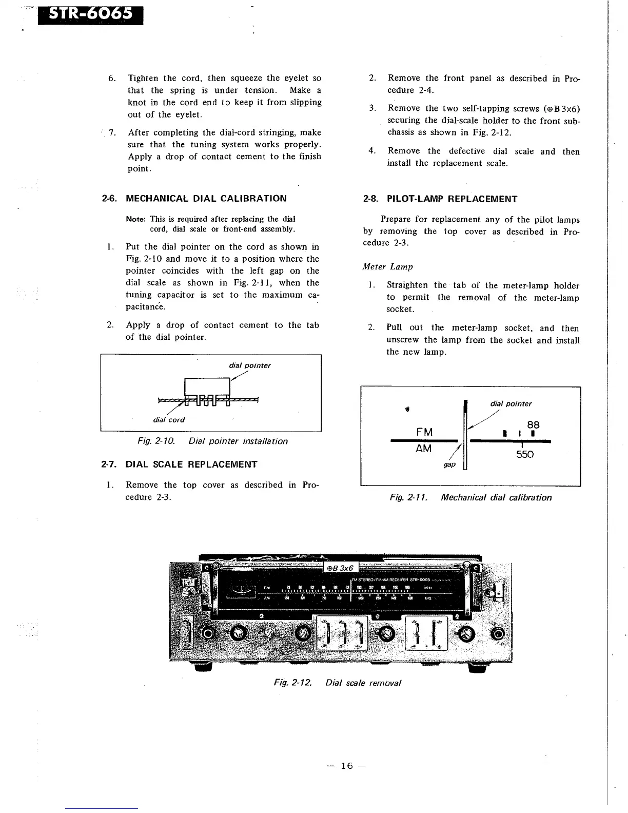 Sony STR-6065 - 2-6. MECHANICAL DIAL CALIBRATION; 2-7. DIAL SCALE REPLACEMENT; 2-8. PILOT-LAMP REPLACEMENT