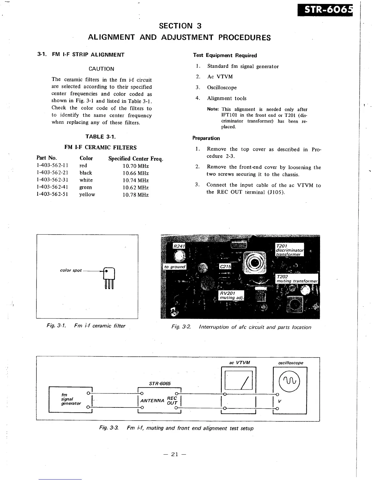 Sony STR-6065 - SECTION 3 ALIGNMENT AND ADJUSTMENT PROCEDURES; 3-1. FM I-F STRIP ALIGNMENT