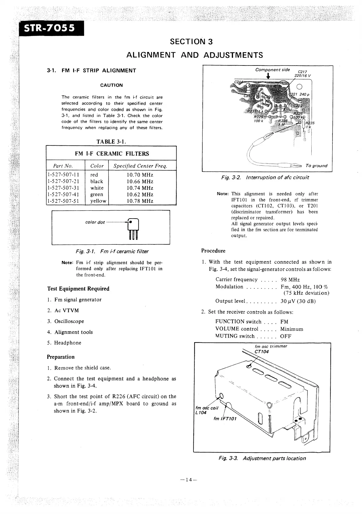 Sony STR-7055 - Alignment and Adjustments; FM I-F Strip Alignment