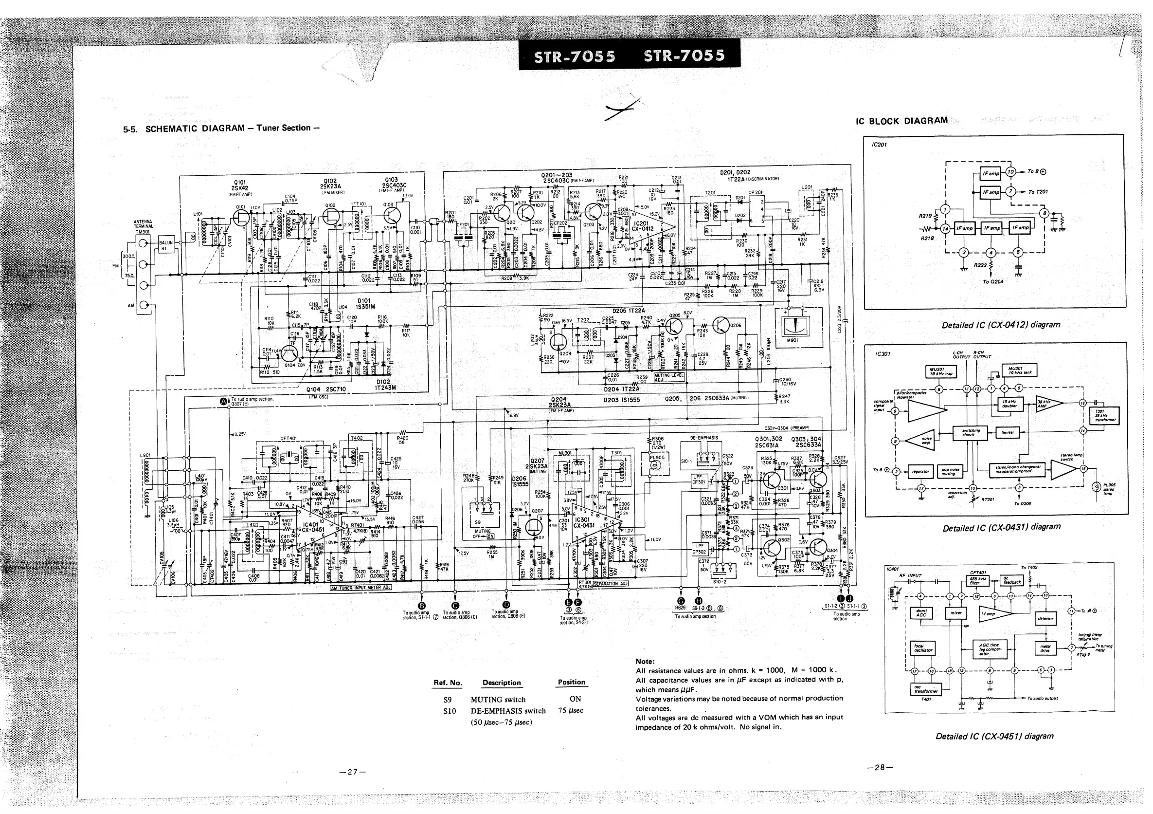 Sony STR-7055 - Schematic Diagram - Tuner Section; IC Block Diagram; Detailed IC (CX-0412) Diagram; Detailed IC (CX-0431) Diagram