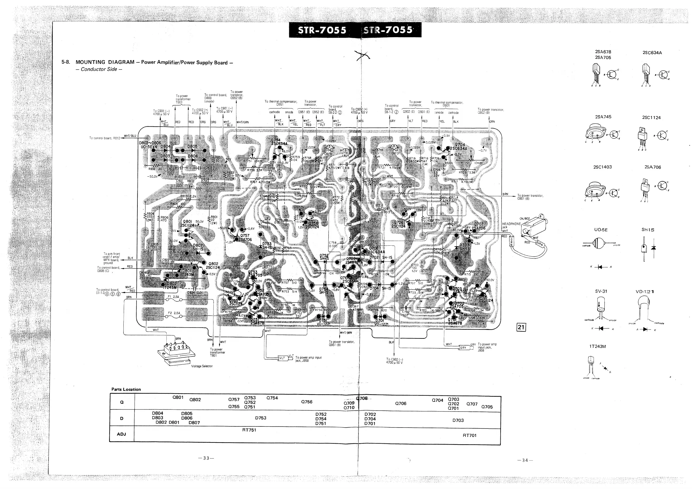 Sony STR-7055 - Mounting Diagram - Power Amplifier;Power Supply Board - Conudctor Side