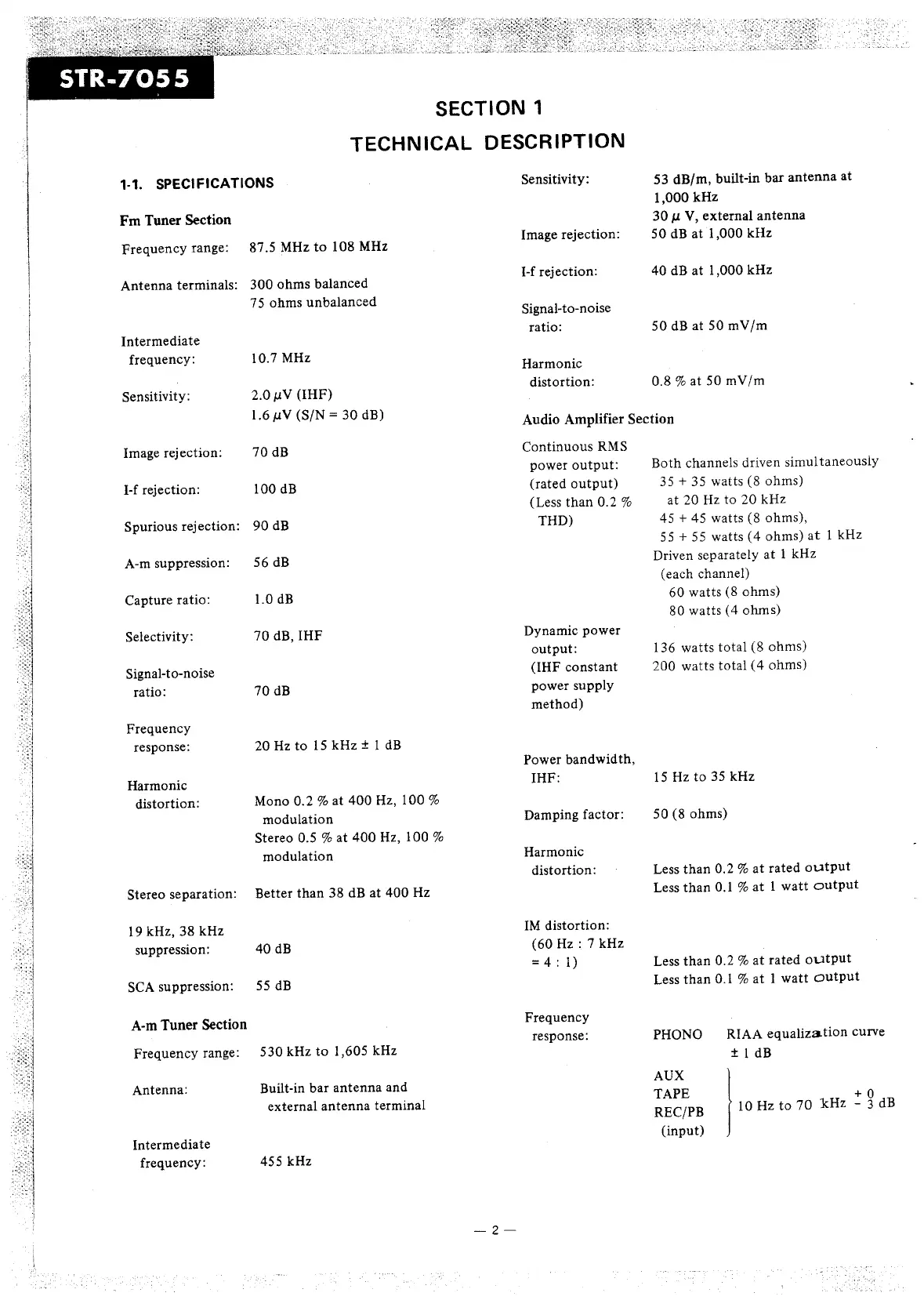 Sony STR-7055 - Technical Description; Specifications