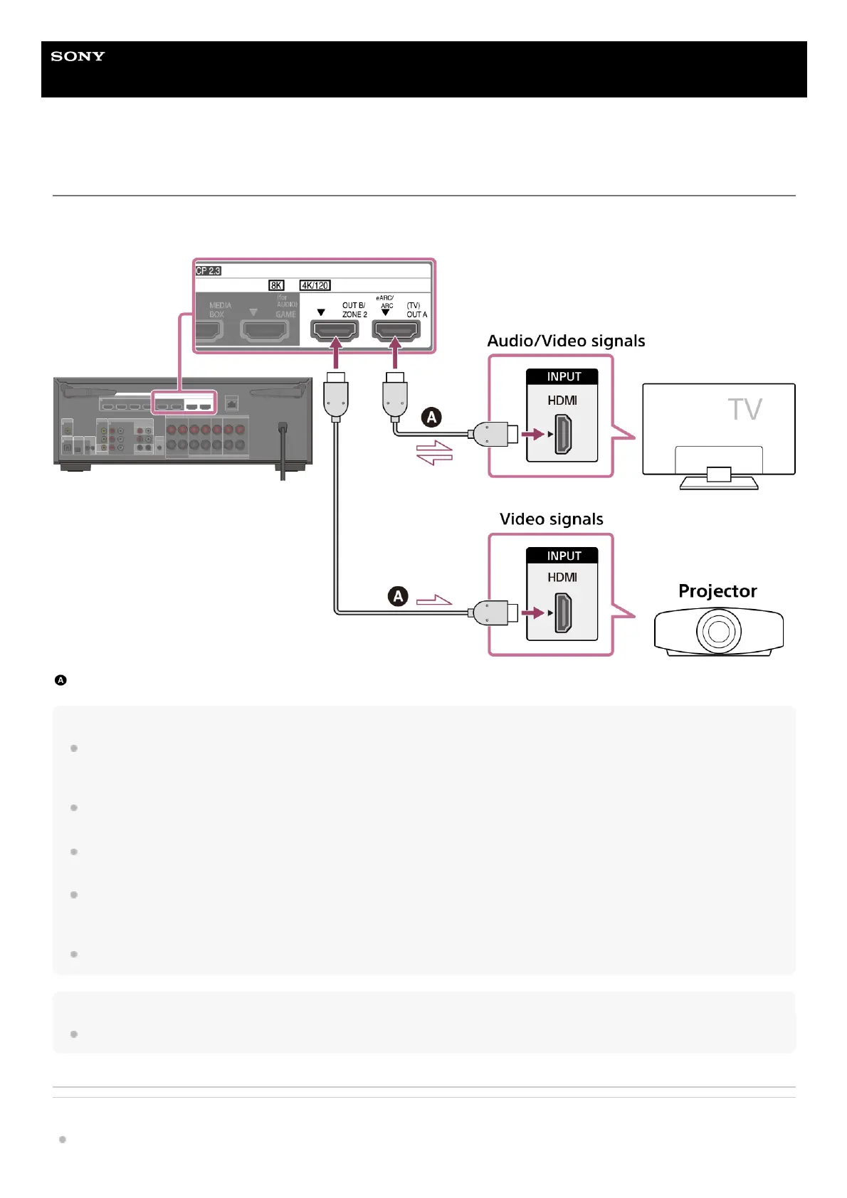 select [HDMI A+B]. If you want to display different images on the TV and the projector, use the multi-zone function and set [HDMI OUT