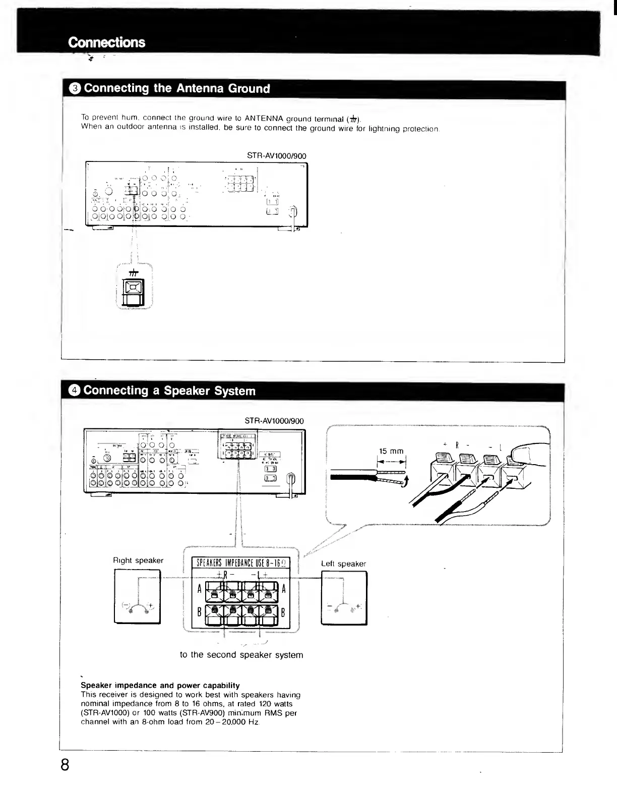 Sony STR-AV1000 - Connecting the Antenna Ground; Connecting a Speaker System
