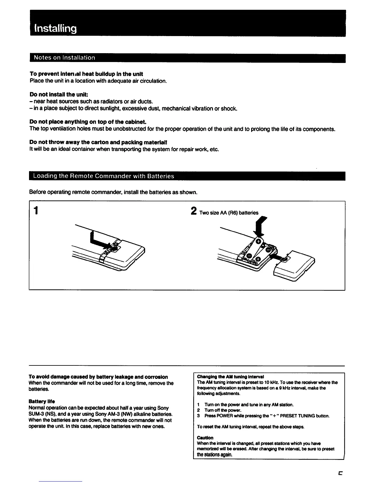 Sony STR-AV1020 - Installing the Receiver