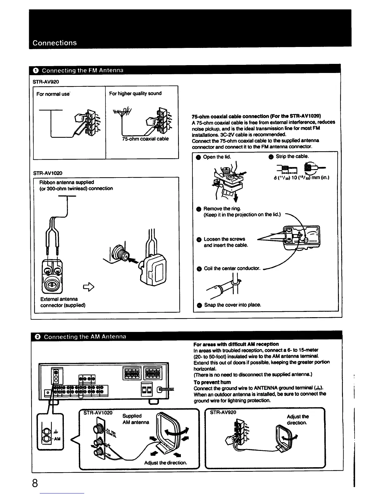 Sony STR-AV1020 - Connecting Antennas; FM and AM Antenna Connections