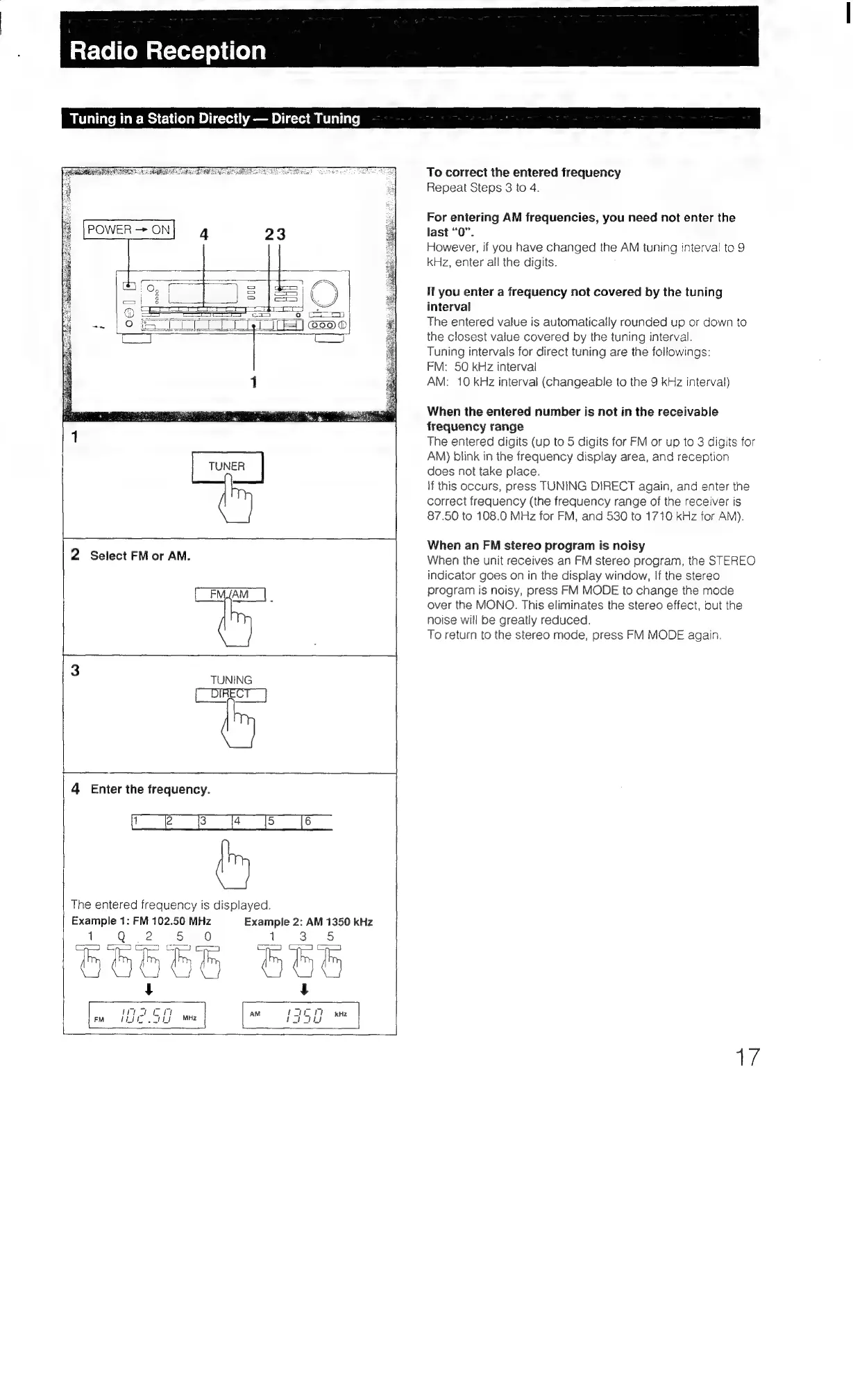 Sony STR-AV1070X - Radio Reception; Direct Tuning Method