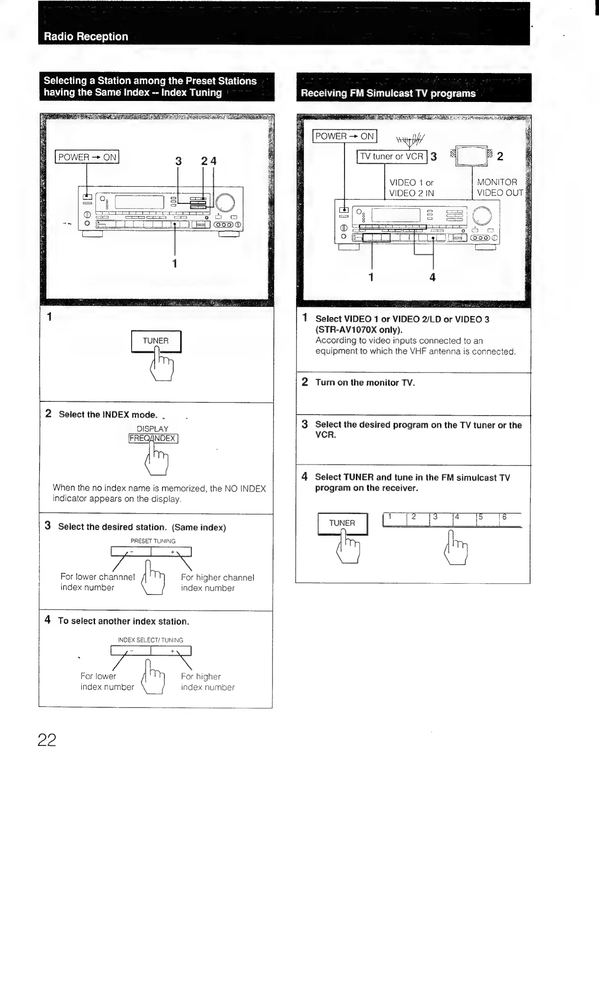 Sony STR-AV1070X - Selecting a Station Among the Preset Stations Having the same Index; COX UPI Gs Less Sistna Shonin Ohesiocsste a Eadlaateak Bag Stetaden Riteebededih Ae Ebb Iueenalte Chowbarases Ladaravtecuduatetasaedd Ae; Receiving FM Simulcast TV Programs.0