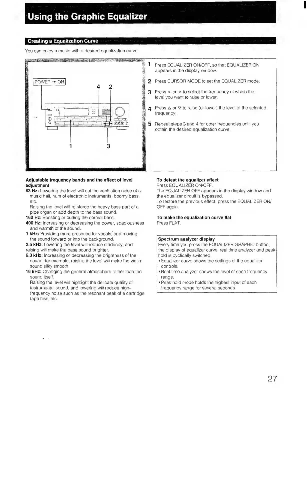 Sony STR-AV1070X - Using the Graphic Equalizer; Creating an Equalization Curve