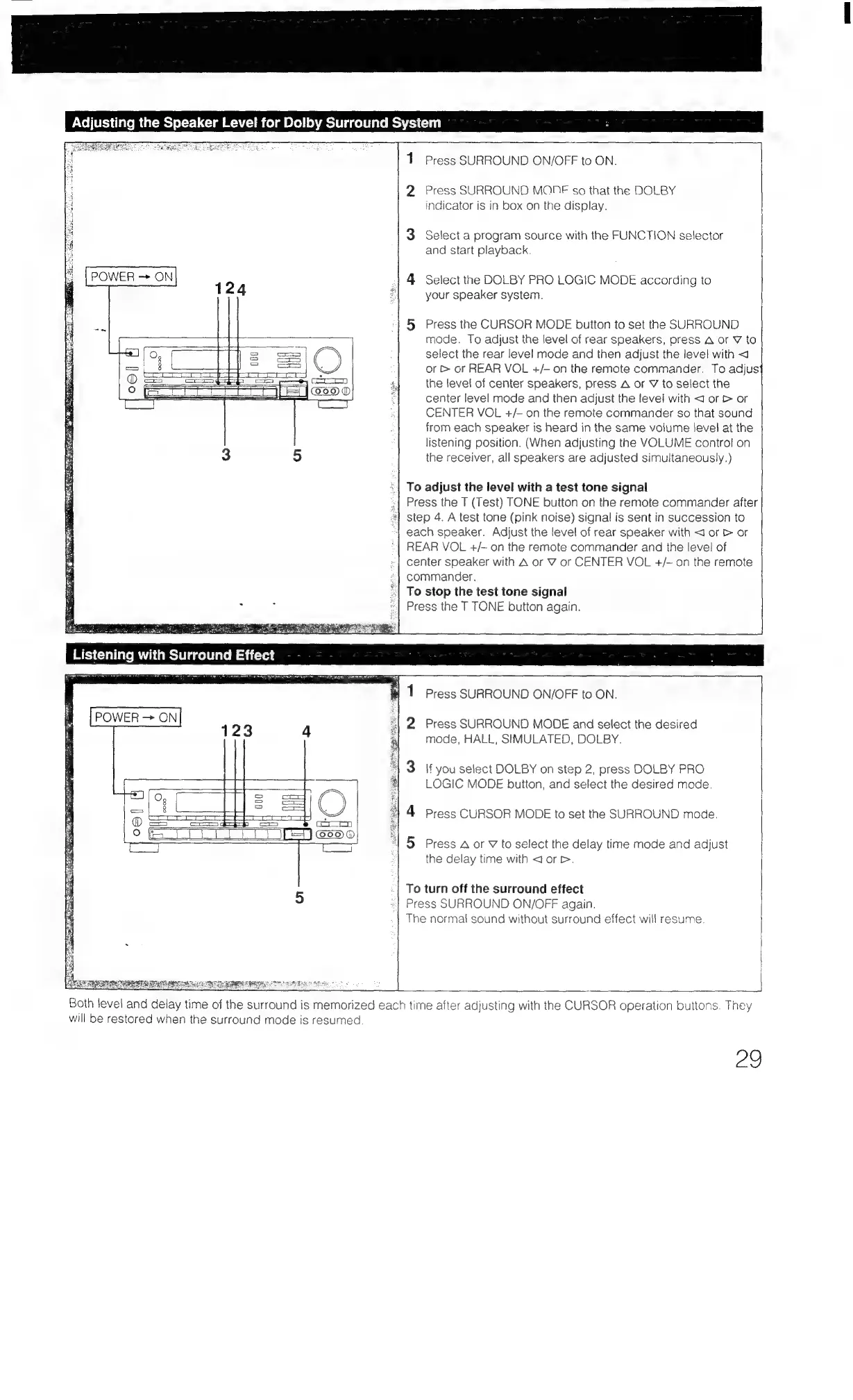 Sony STR-AV1070X - Adjusting Speaker Levels for Dolby Surround; Listening with Surround Effect