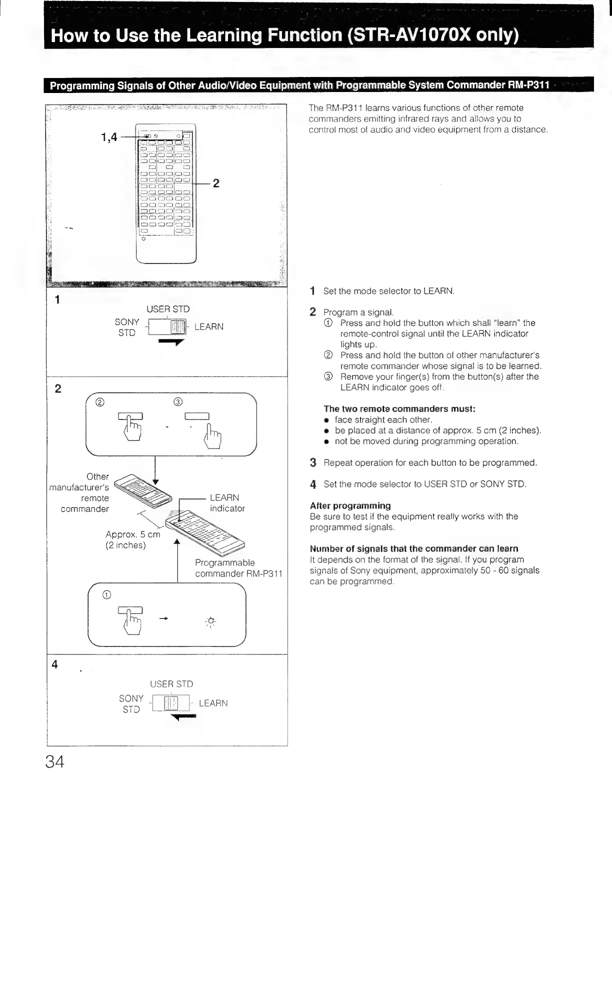 Sony STR-AV1070X - Using the Learning Function (STR-AV1070 X only); Programming Remote Signals