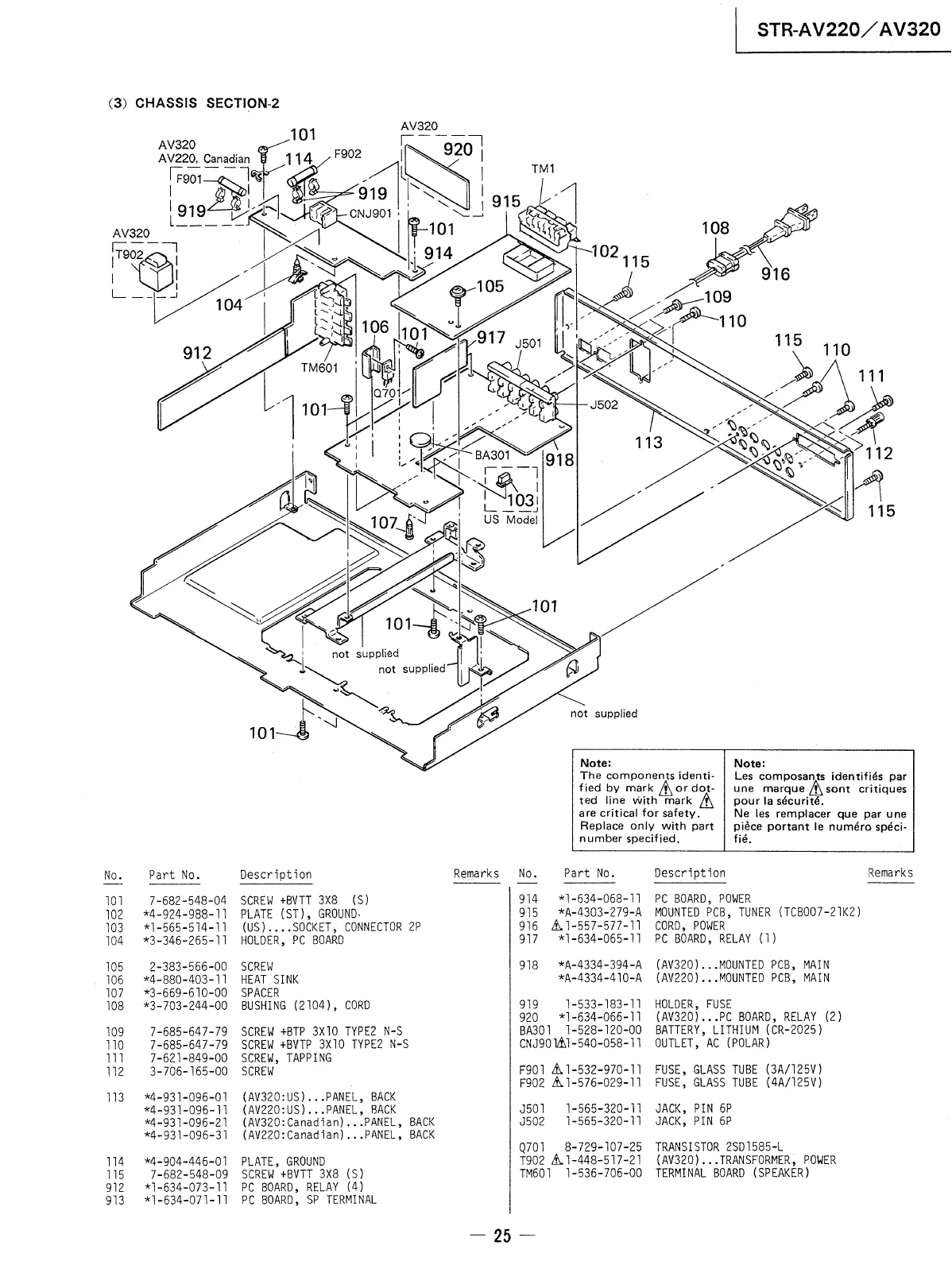 Sony STR-AV220 - Pc Board, Relay; Pc Board, Power; Cord, Power C501; A-4334-394-A (Av320)... Mounted Pcb, Main