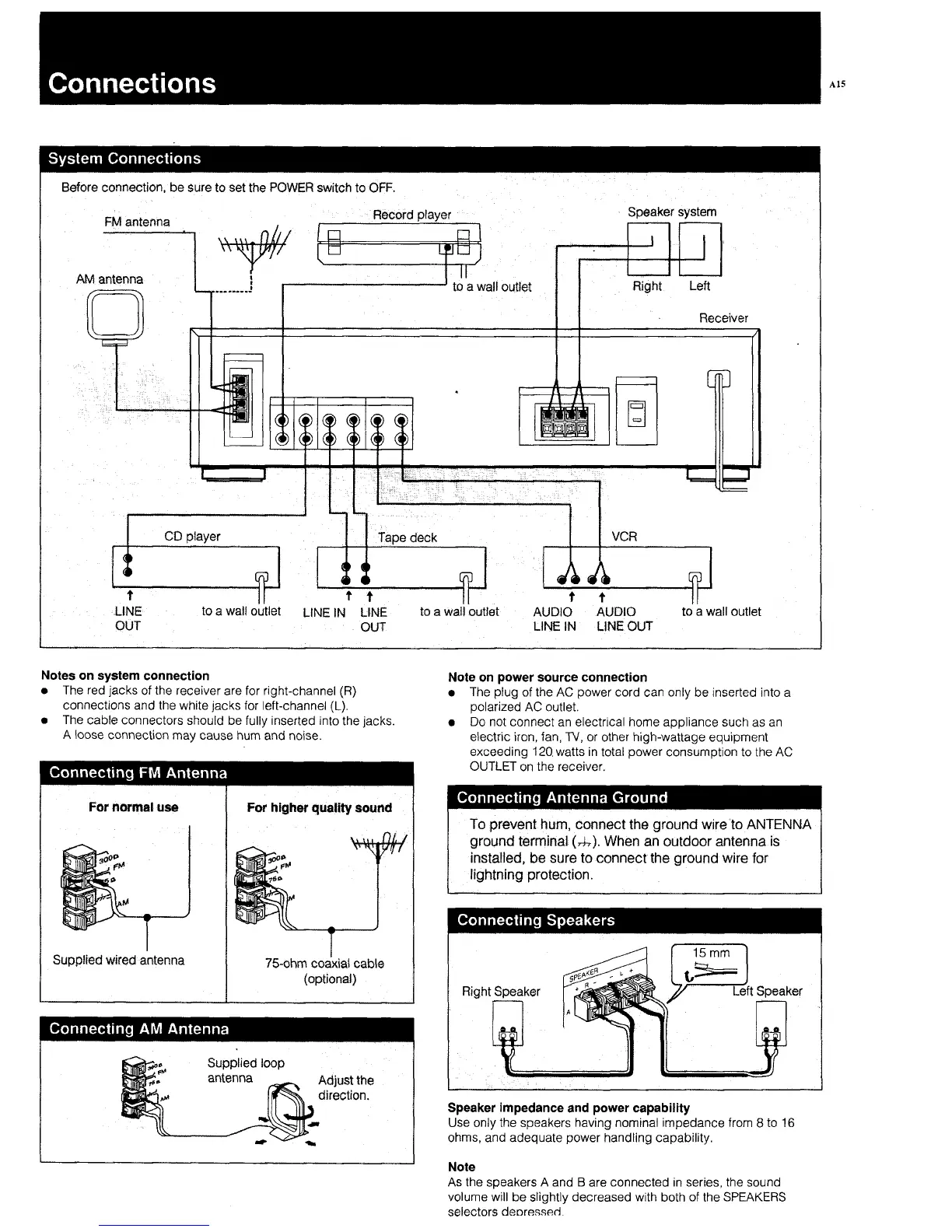 Sony STR-AV23 - Connections; System Connections; Connecting FM Antenna; Connecting AM Antenna