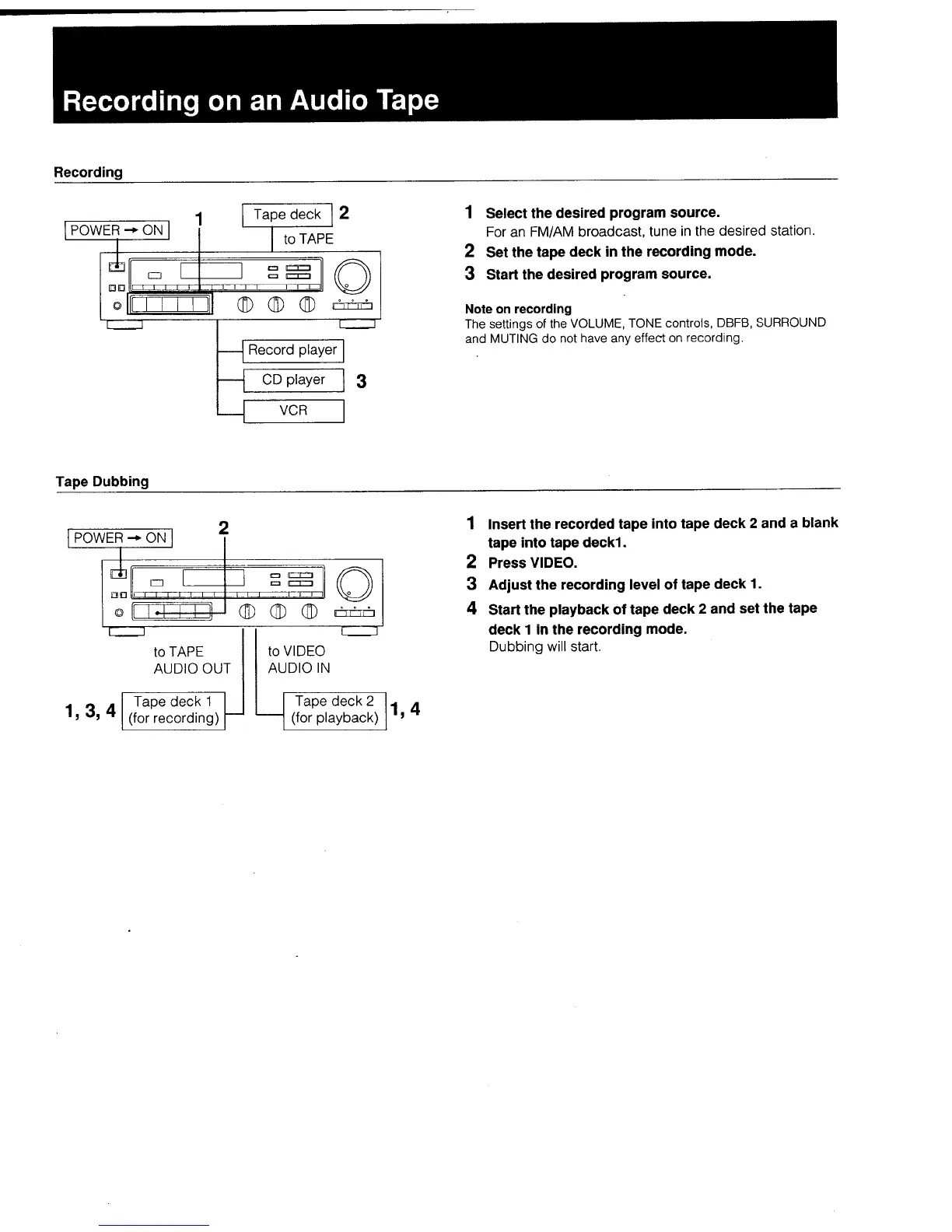Sony STR-AV23 - Recording on an Audio Tape; Recording; Tape Dubbing