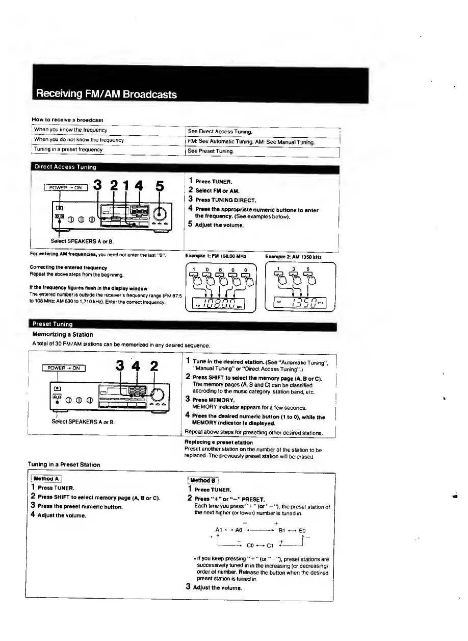 Sony STR-AV320 - Receiving FM;AM Broadcasts; Tuning Methods Overview; Direct Access Tuning; Memorizing Stations
