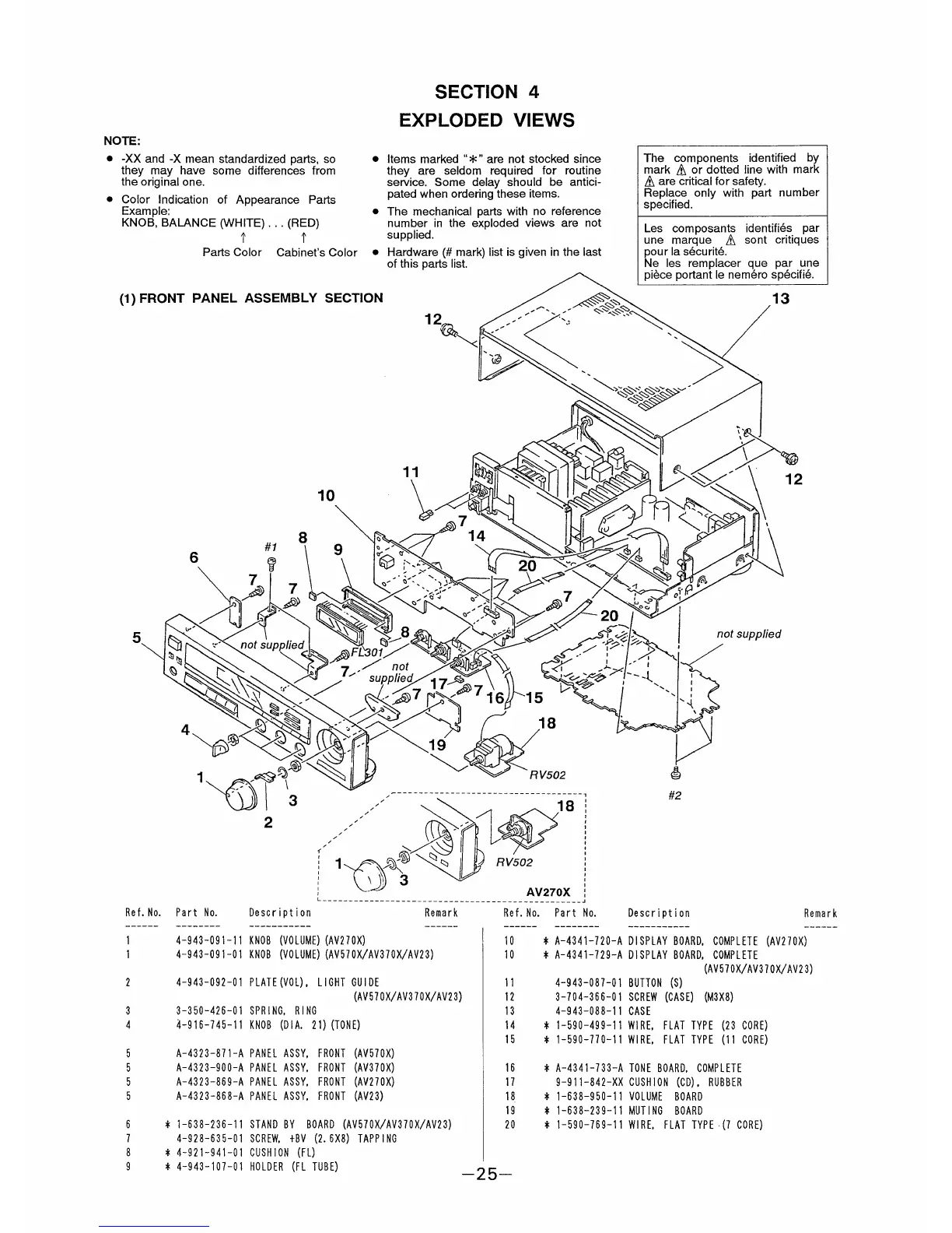 Sony STR-AV370X - Exploded Views and Parts Identification; Front Panel Assembly Exploded View