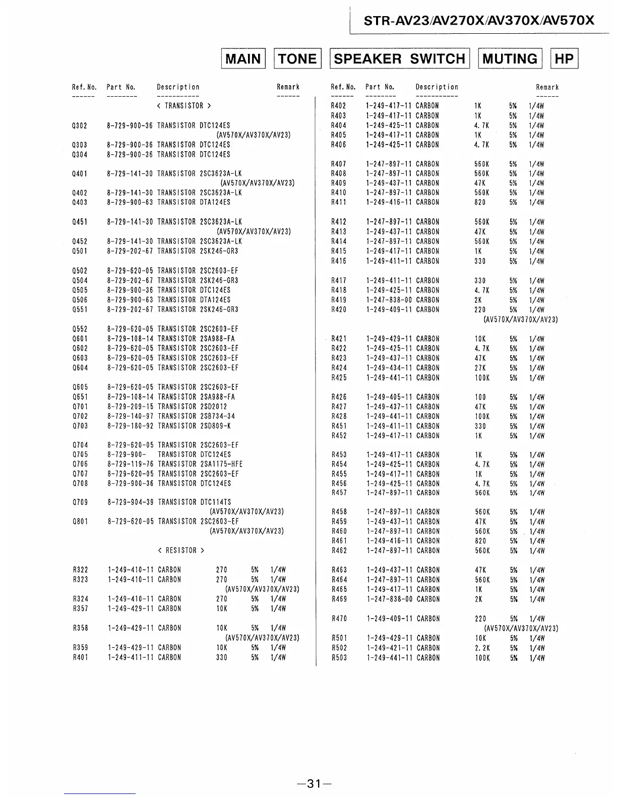 Sony STR-AV370X - Main, Tone, Speaker, Muting, HP Parts