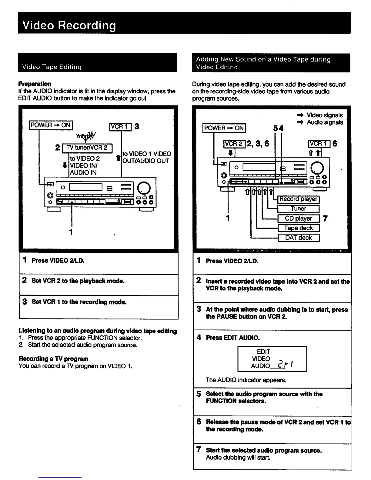 Sony STR-AV53 - Video Recording; Video Tape Editing; Adding Audio to Video Tapes