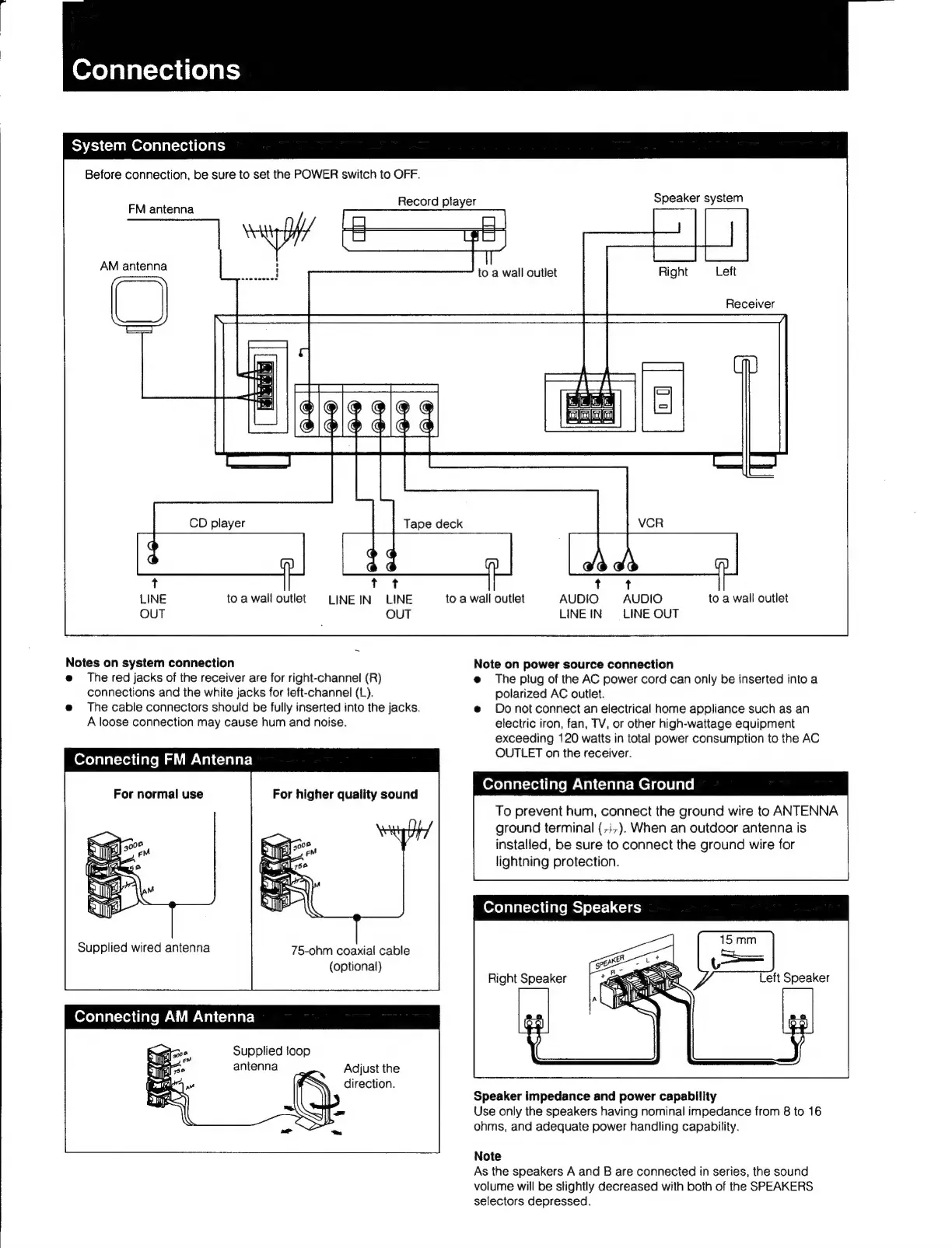 Sony STR-AV570X - Connections; System Connections Overview; Antenna and Speaker Connections