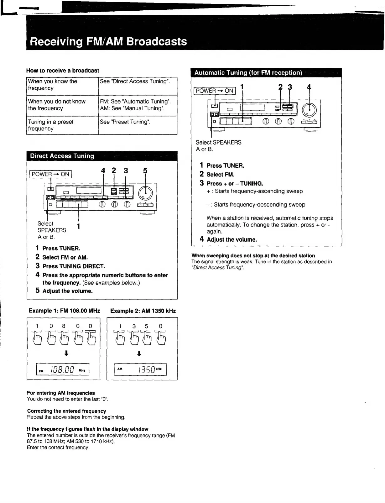 Sony STR-AV570X - Receiving FM;AM Broadcasts; Tuning Methods Overview; Frequency Entry and Correction