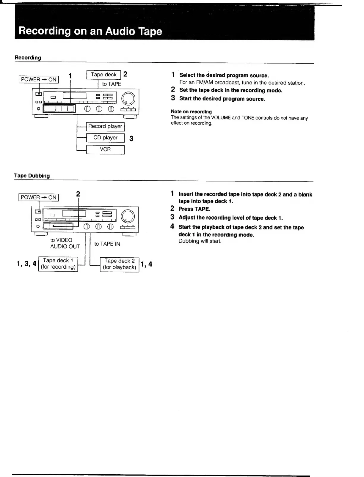 Sony STR-AV570X - Recording on an Audio Tape; Recording and Tape Dubbing