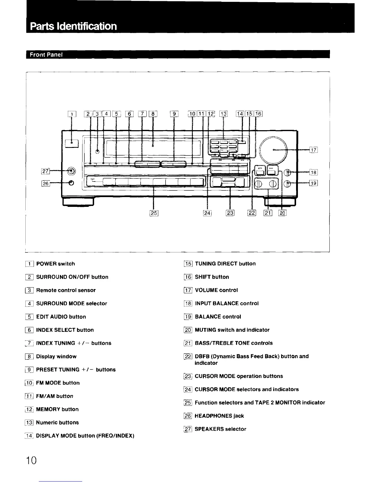 Sony STR-AV720 - Parts Identification; Front Panel