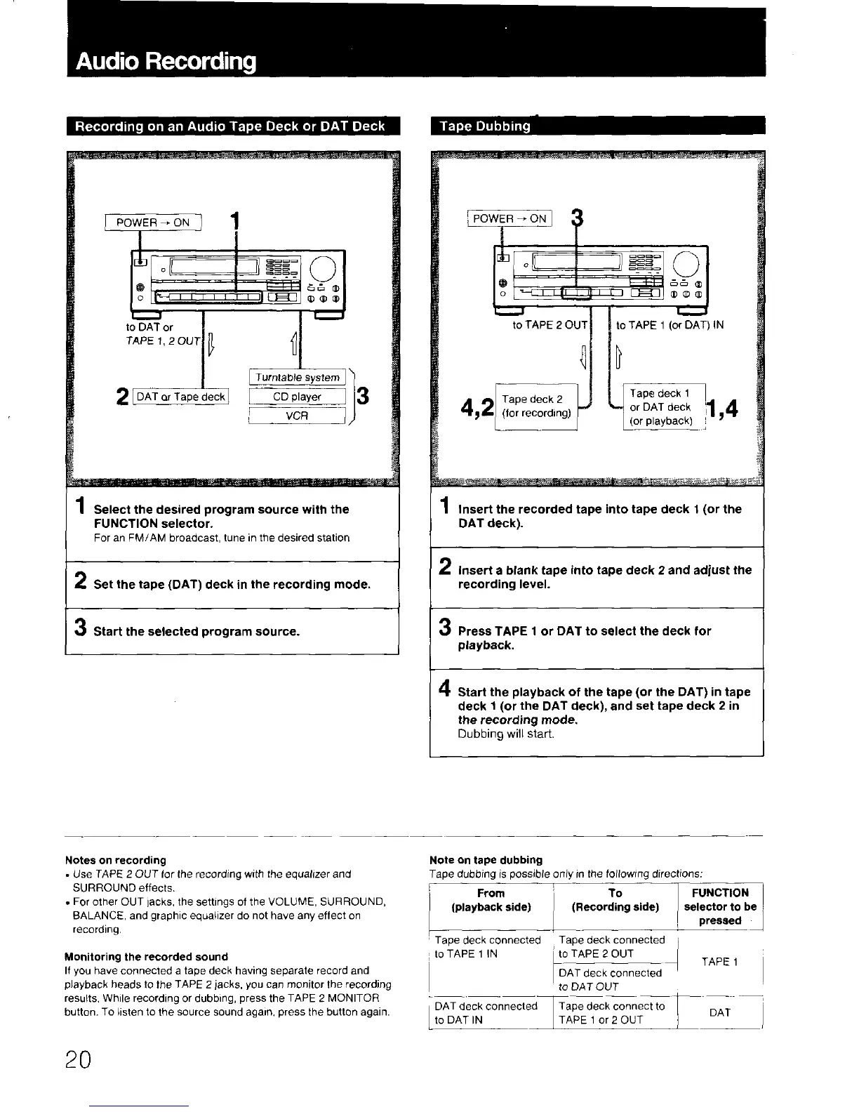 Sony STR-AV720 - Audio Recording and Dubbing; Recording Audio; Tape Dubbing Procedure
