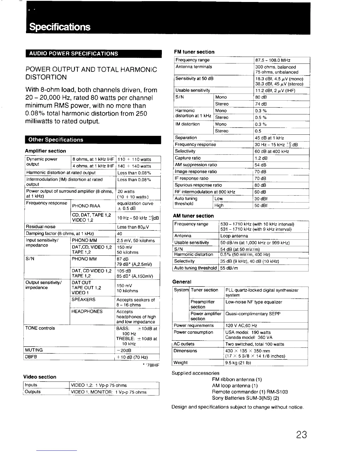 Sony STR-AV720 - Specifications
