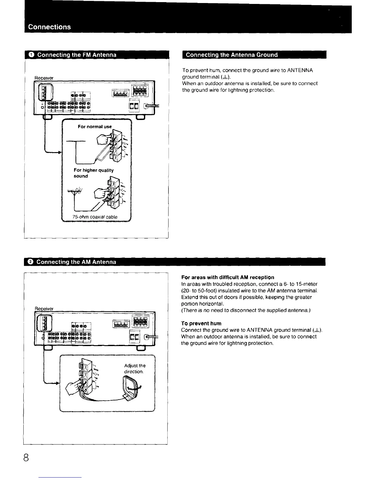 Sony STR-AV720 - FM Antenna Connection; Antenna Ground Connection; AM Antenna Connection
