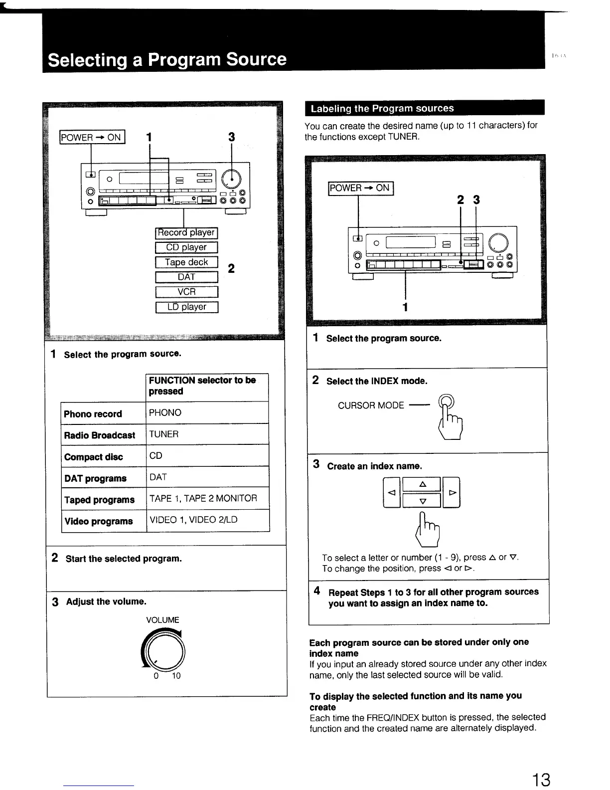Sony STR-AV770X - Selecting a Program Source; Labeling the Program Sources