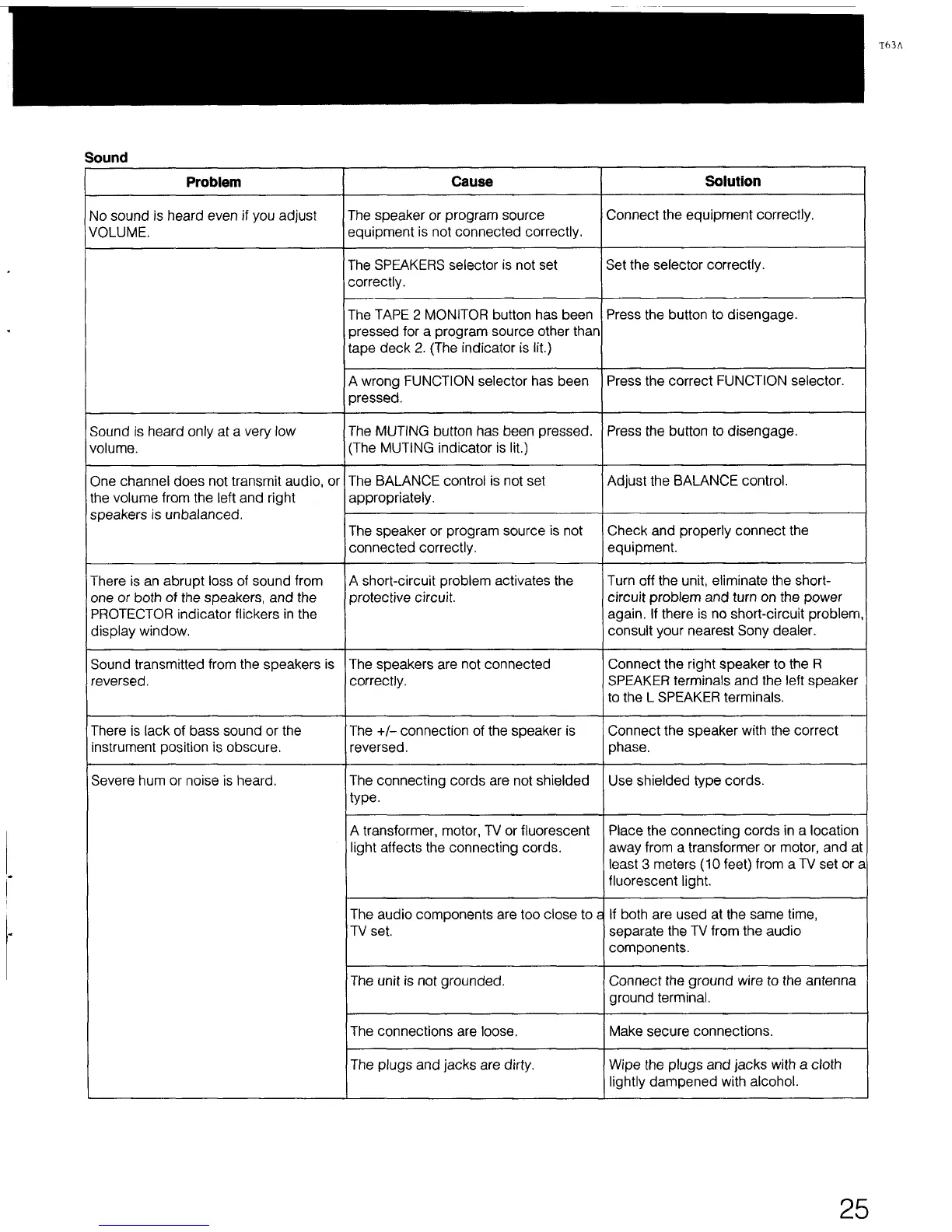 Sony STR-AV770X - Sound Output Troubleshooting Guide; Troubleshooting No Sound or Low Volume; Troubleshooting Audio Channel;Speaker Issues; Troubleshooting Hum and Noise