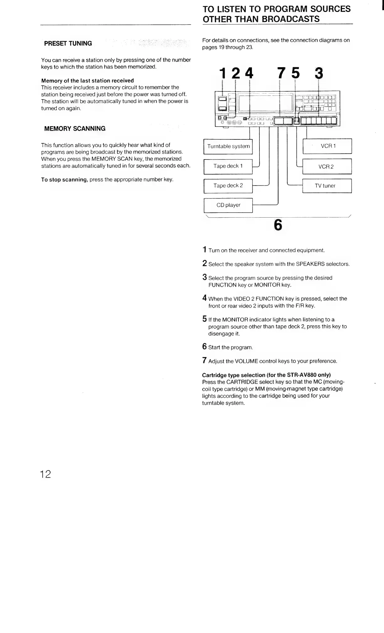Sony STR-AV780 - To Listen to Program Sources Other than Broadcasts; Spiasdbatbidiashaa Cele Ausaottancaaveanlemtes Tt Acatacs Preset Tuning