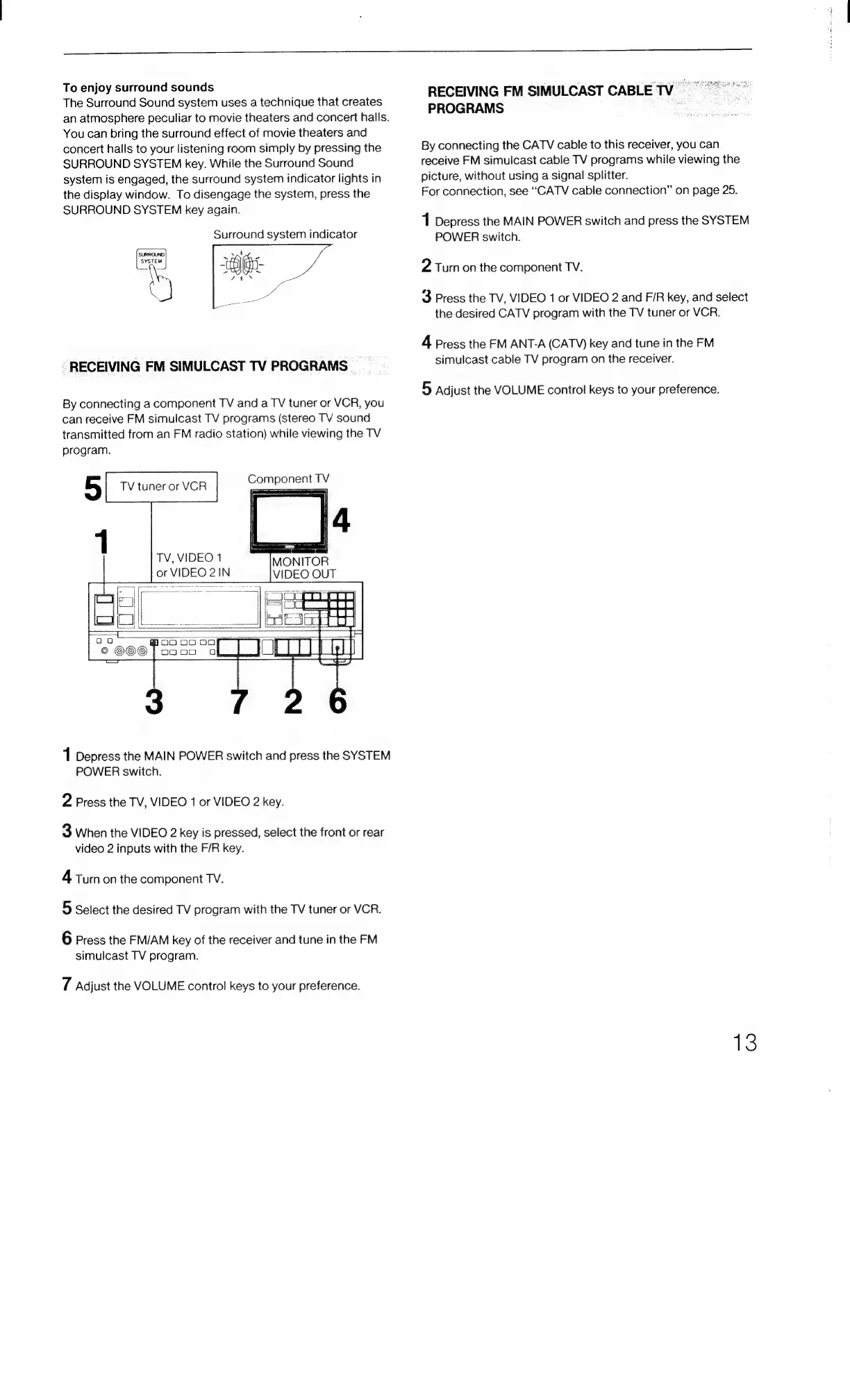 Sony STR-AV780 - Receiving FM Simulcast TV Programs; Receiving FM Simulcast Cable TV Programs