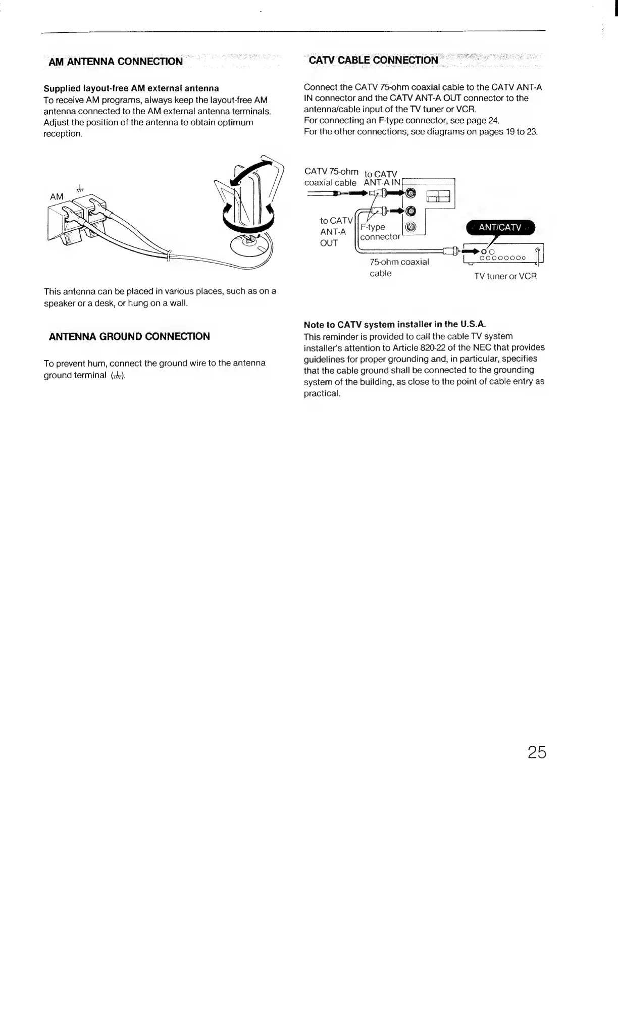 Sony STR-AV780 - AM Antenna CONNECHION Uo; Antenna Ground CONNECTION; CATV Cable CONNECTION