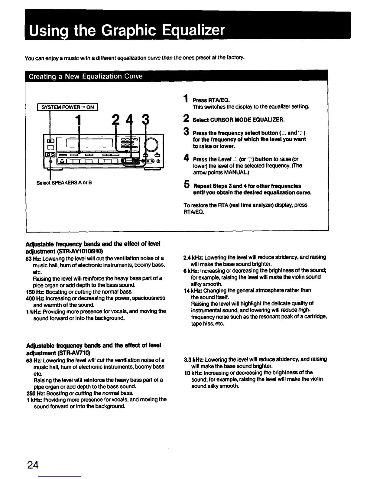 Sony STR-AV910 - Using the Graphic Equalizer; Creating a New Equalization Curve; EQ Band Effects (STR-AV1010;910)