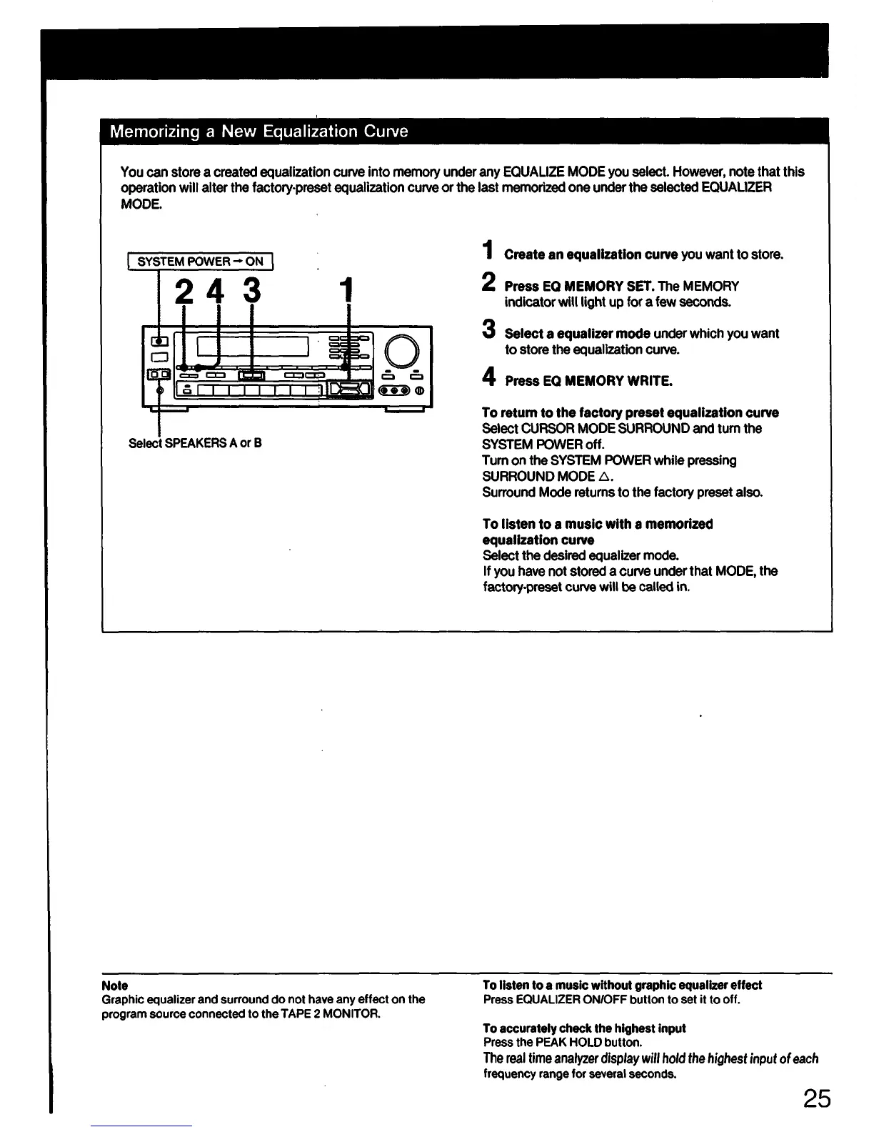 Sony STR-AV910 - Memorizing a New Equalization Curve