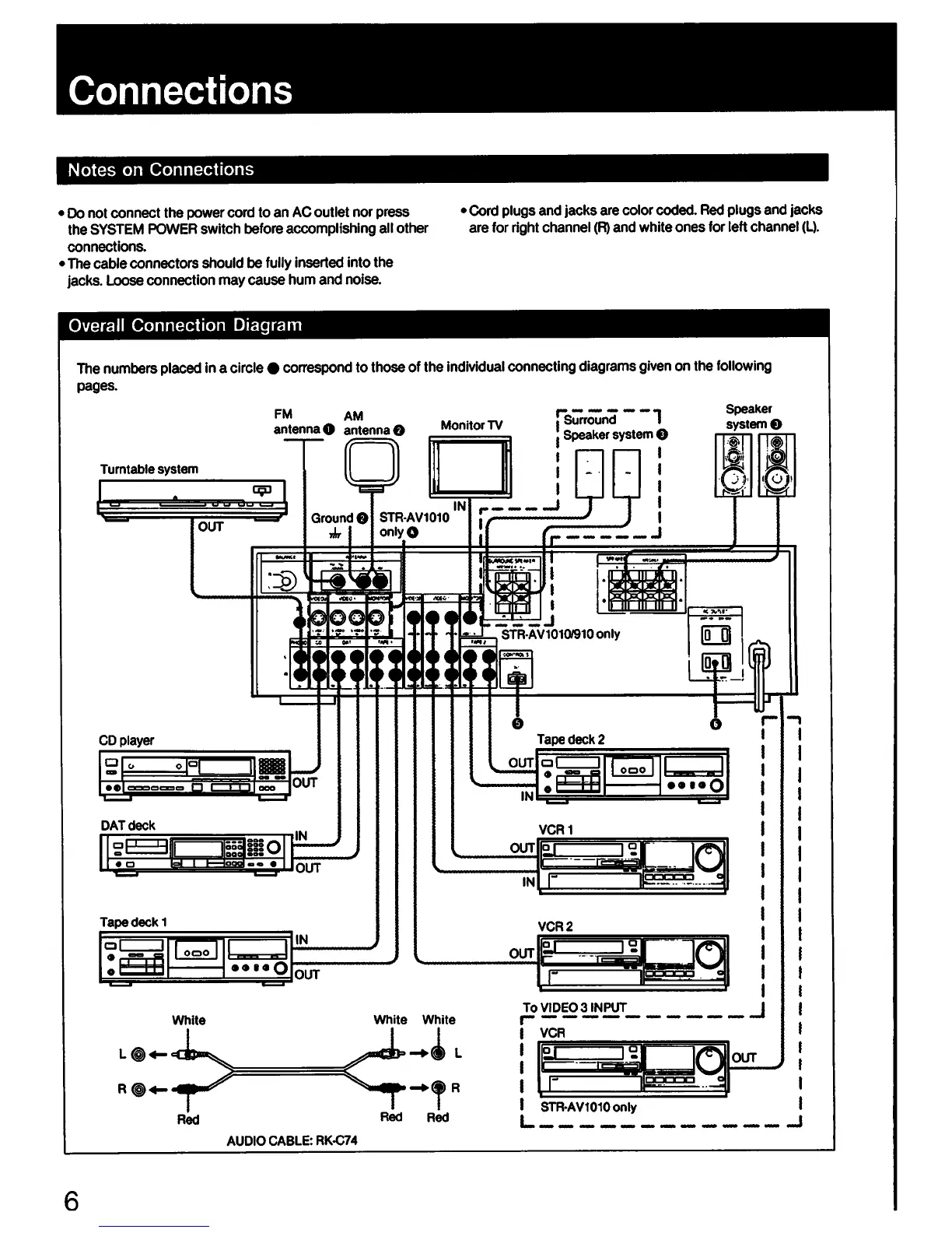 Sony STR-AV910 - Connections Guide; Connection Notes; Overall Connection Diagram