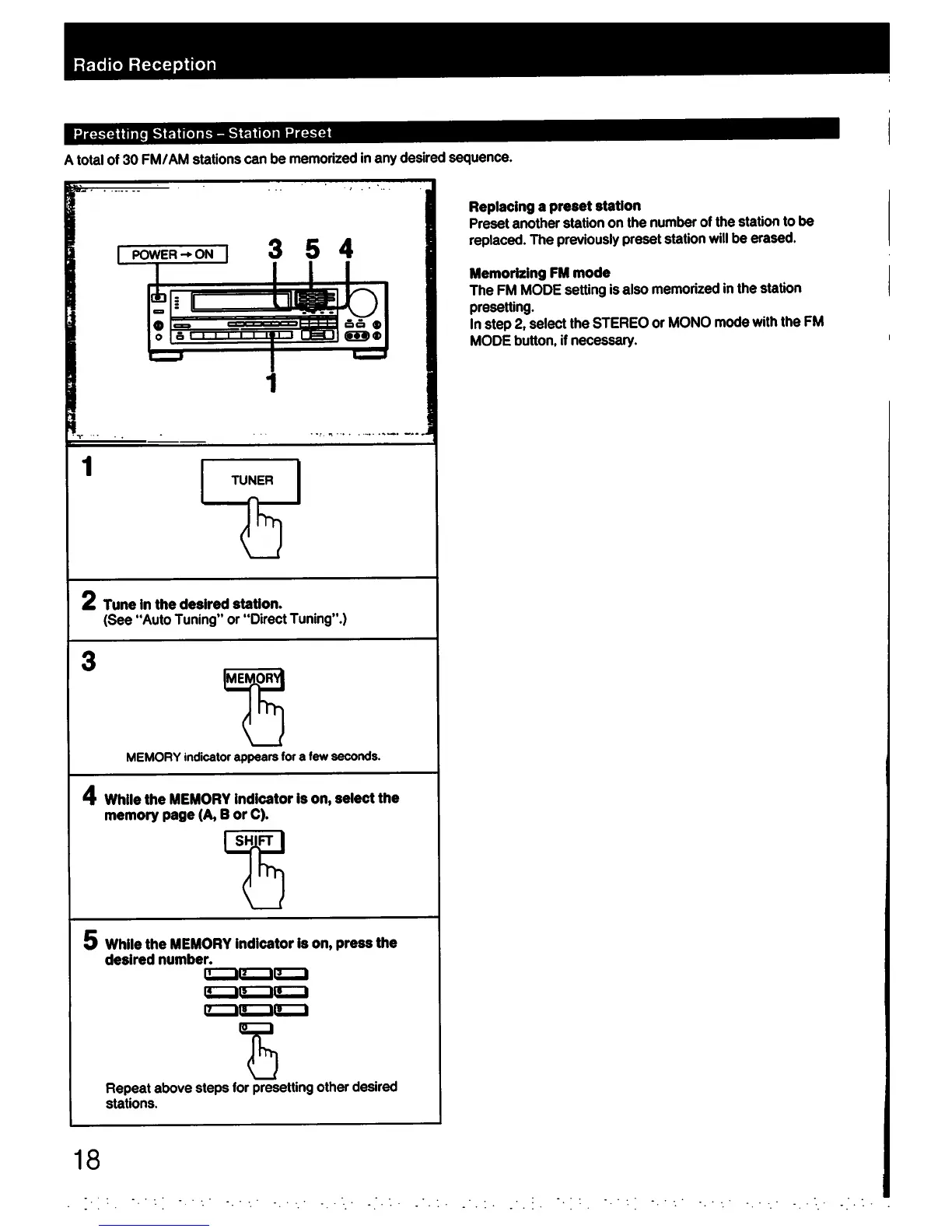 Sony STR-AV920 - Radio Reception; Station Presetting Procedure