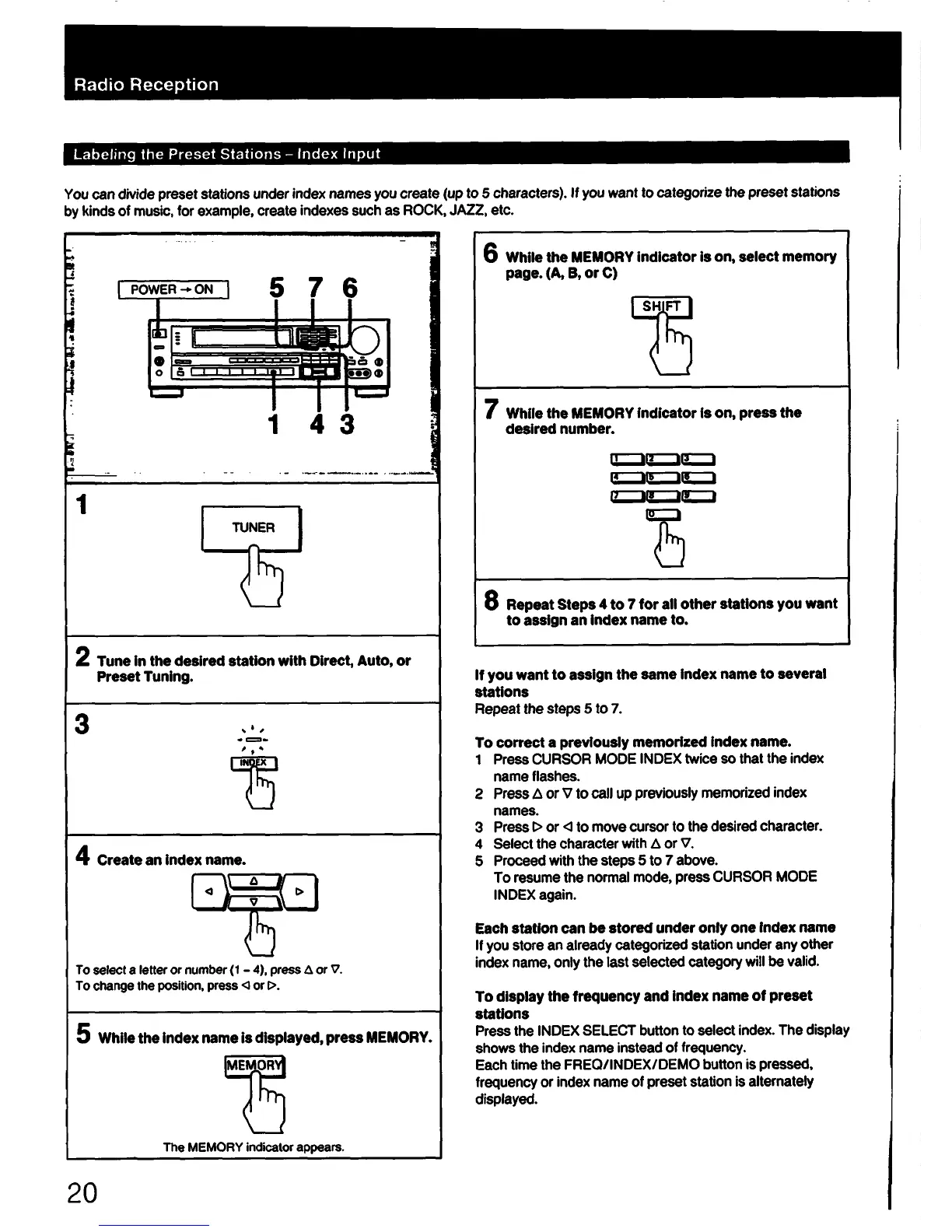 Sony STR-AV920 - Radio Reception; Labeling Stations with Index Names