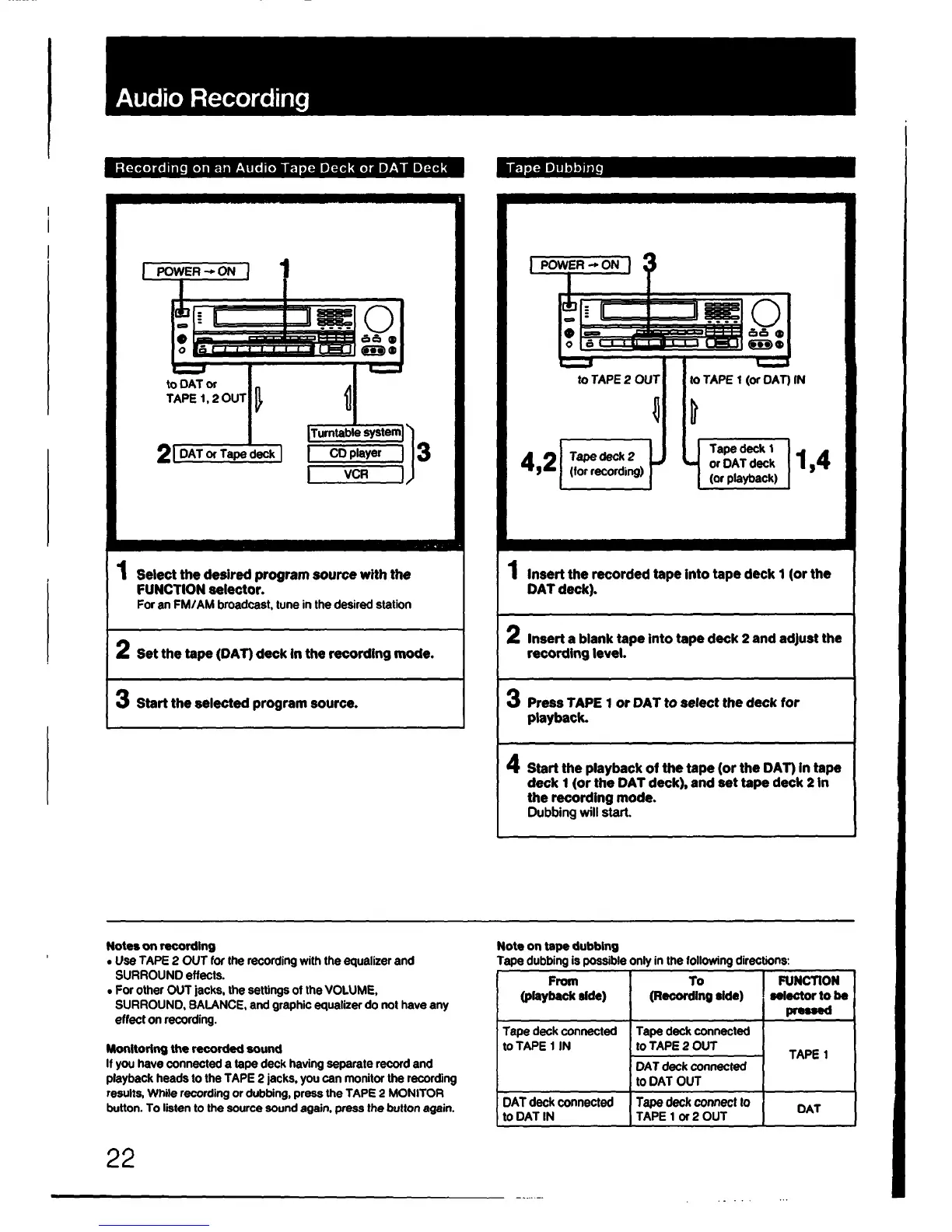 Sony STR-AV920 - Audio Recording; Recording to Tape or DAT Deck; Tape Dubbing Process