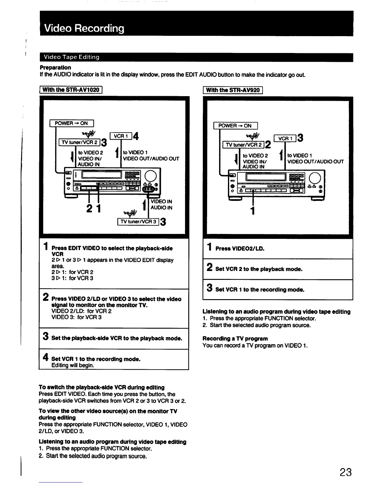 Sony STR-AV920 - Video Recording and Editing; Video Tape Editing (STR-AV1020); Video Tape Editing (STR-AV920)