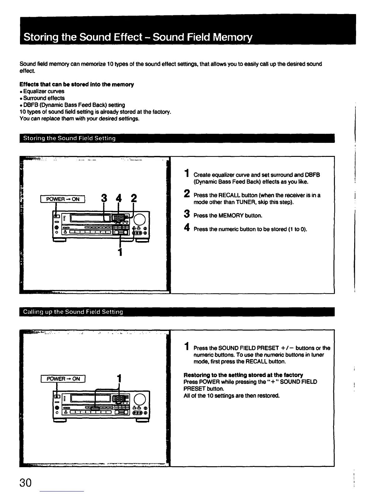 Sony STR-AV920 - Sound Field Memory; Storing Sound Field Settings; Recalling Sound Field Settings