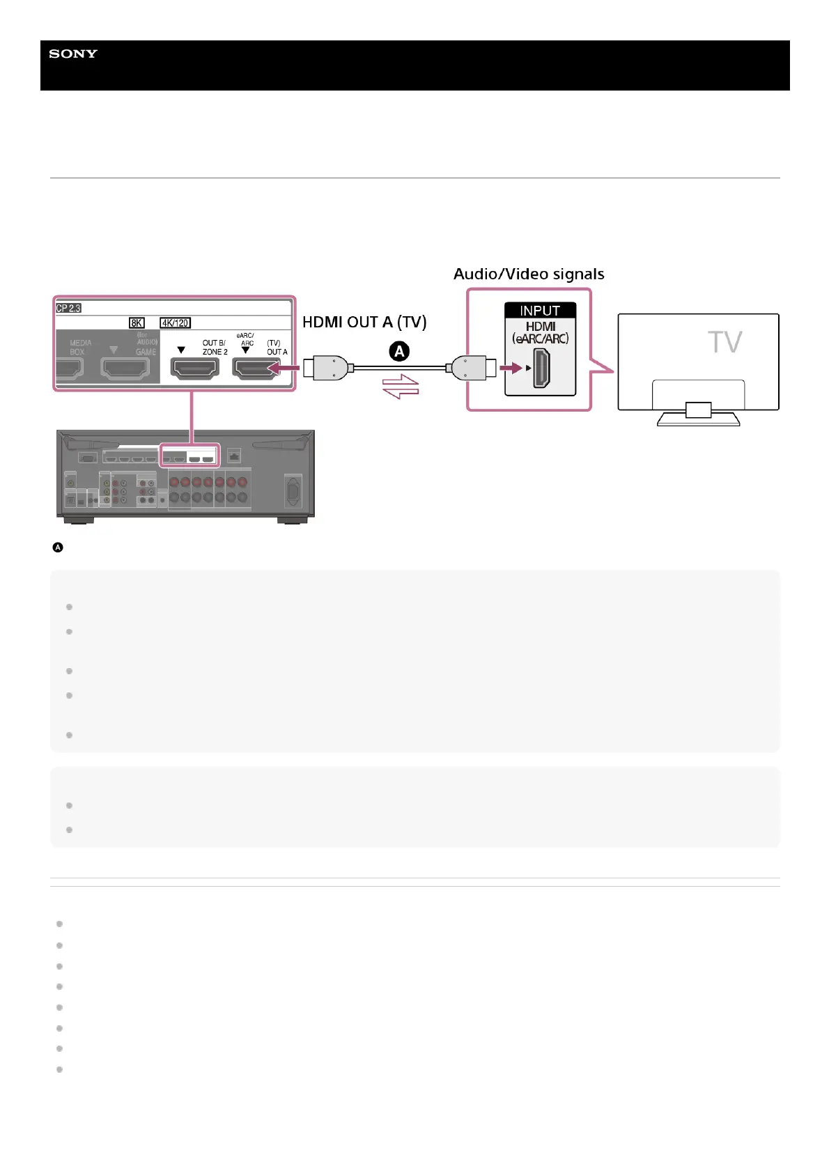 You must turn on the eARC or ARC function to use this connection. Select [Audio Return Channel] - [eARC] or [ARC] in the [HDMI Settings] menu.