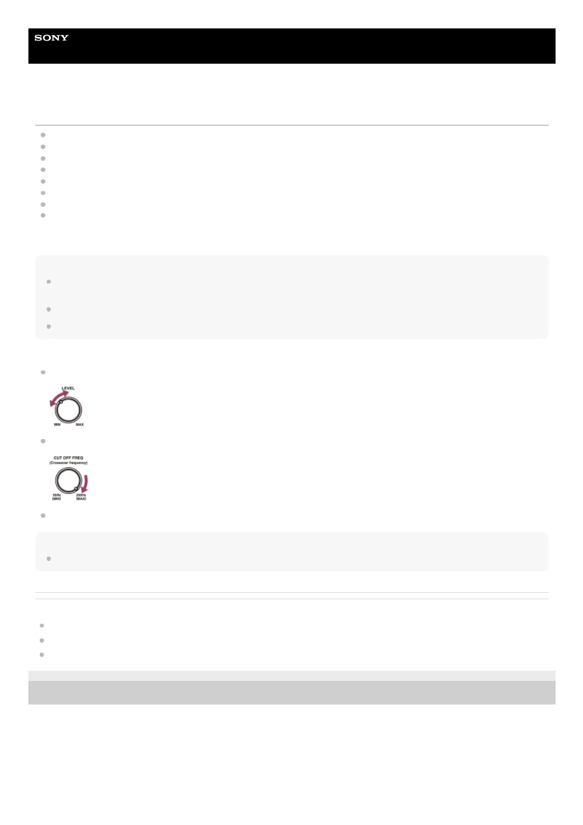 When a subwoofer with a crossover frequency function is connected, set the value to maximum.