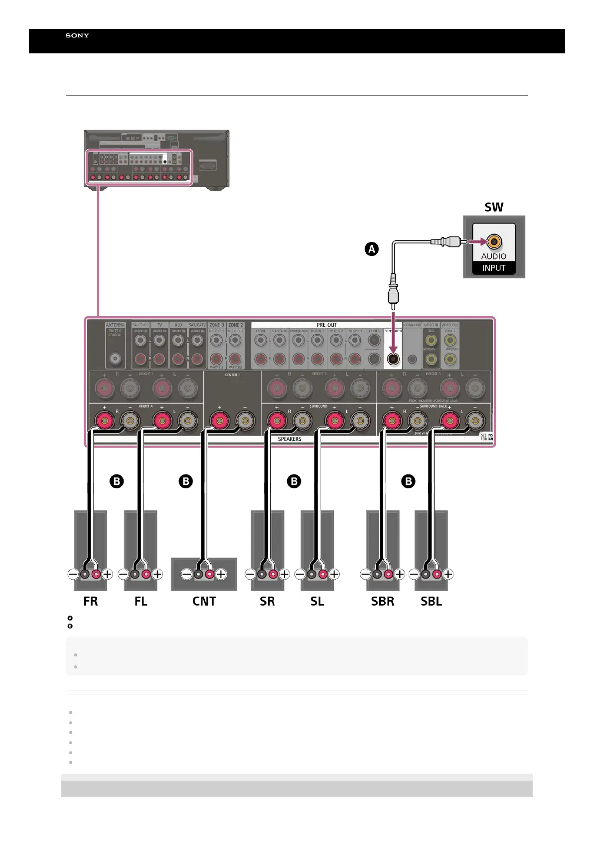 For details on how to connect speaker cables to the receiver, see “How to connect speaker cables.”