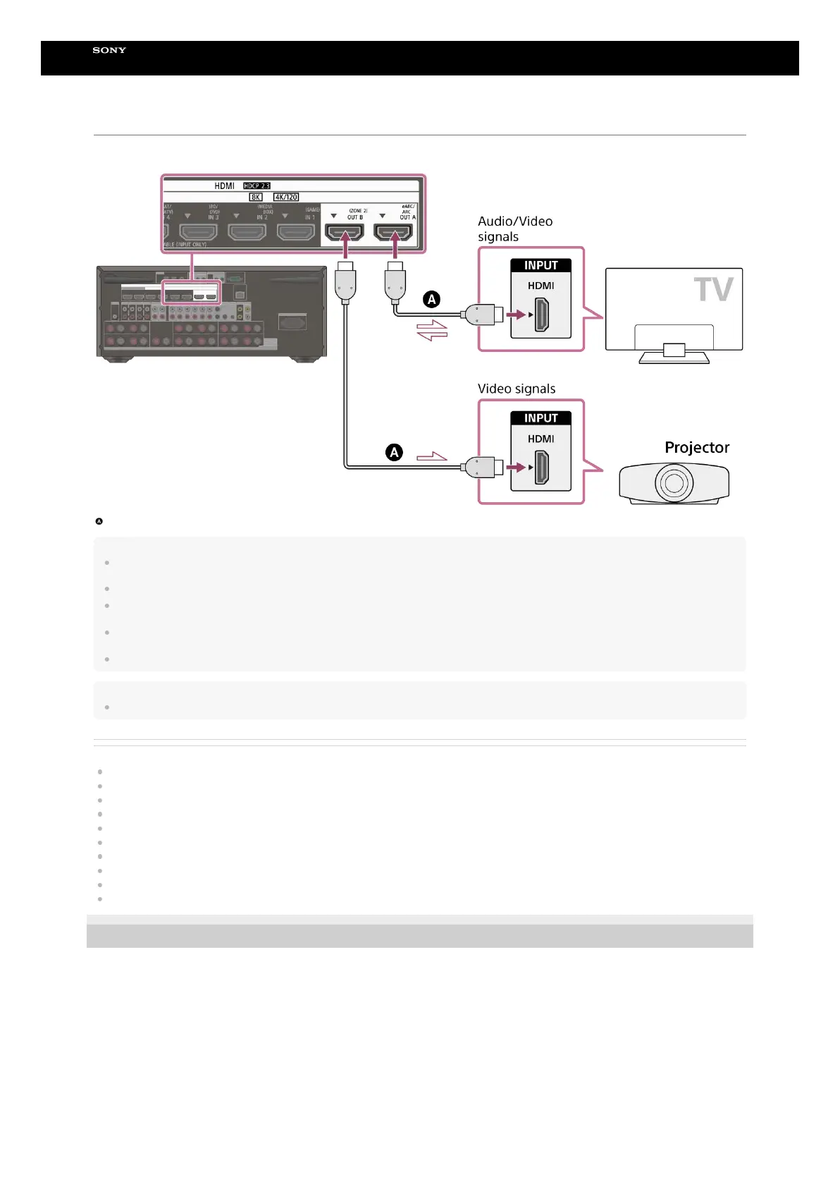 Connect a TV to the HDMI OUT A jack and connect a projector to the HDMI OUT B (ZONE 2) jack.